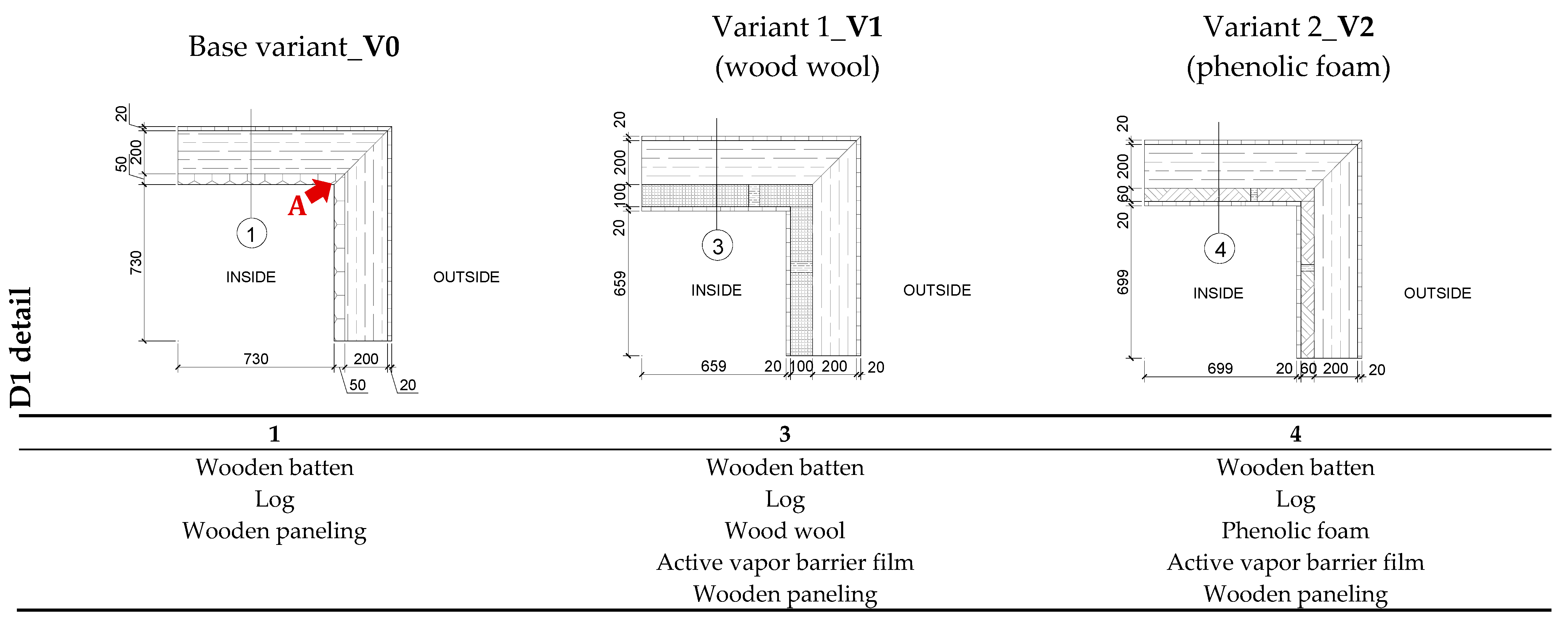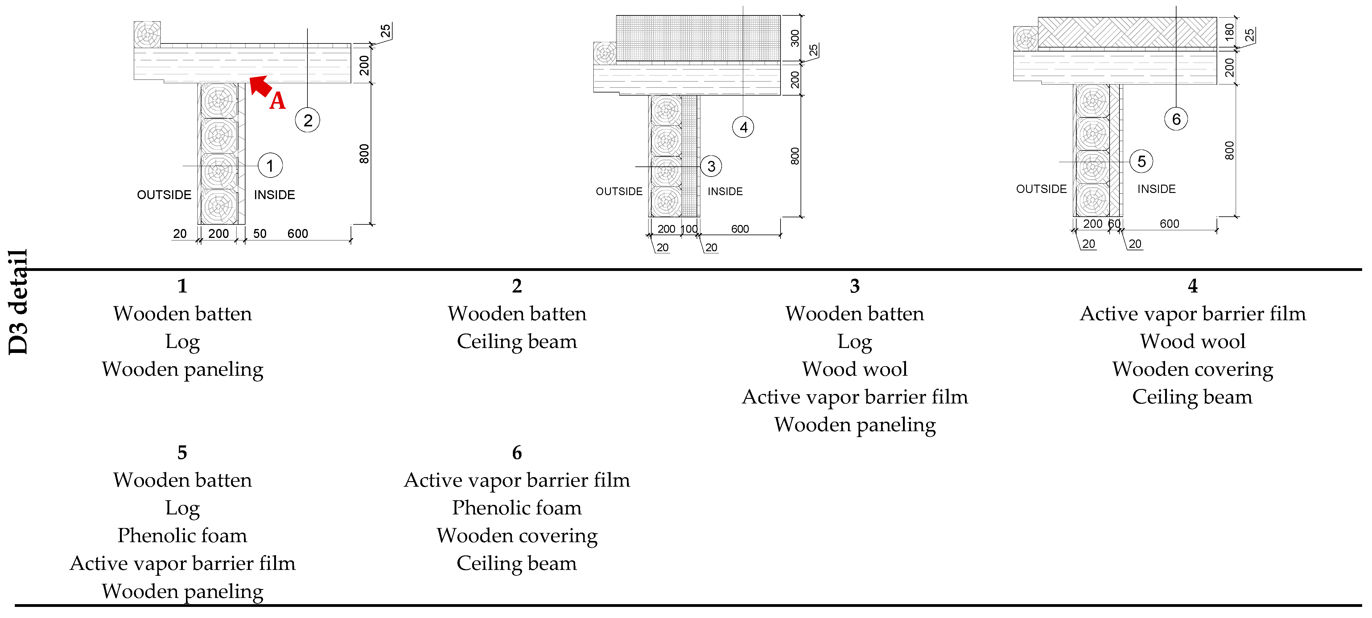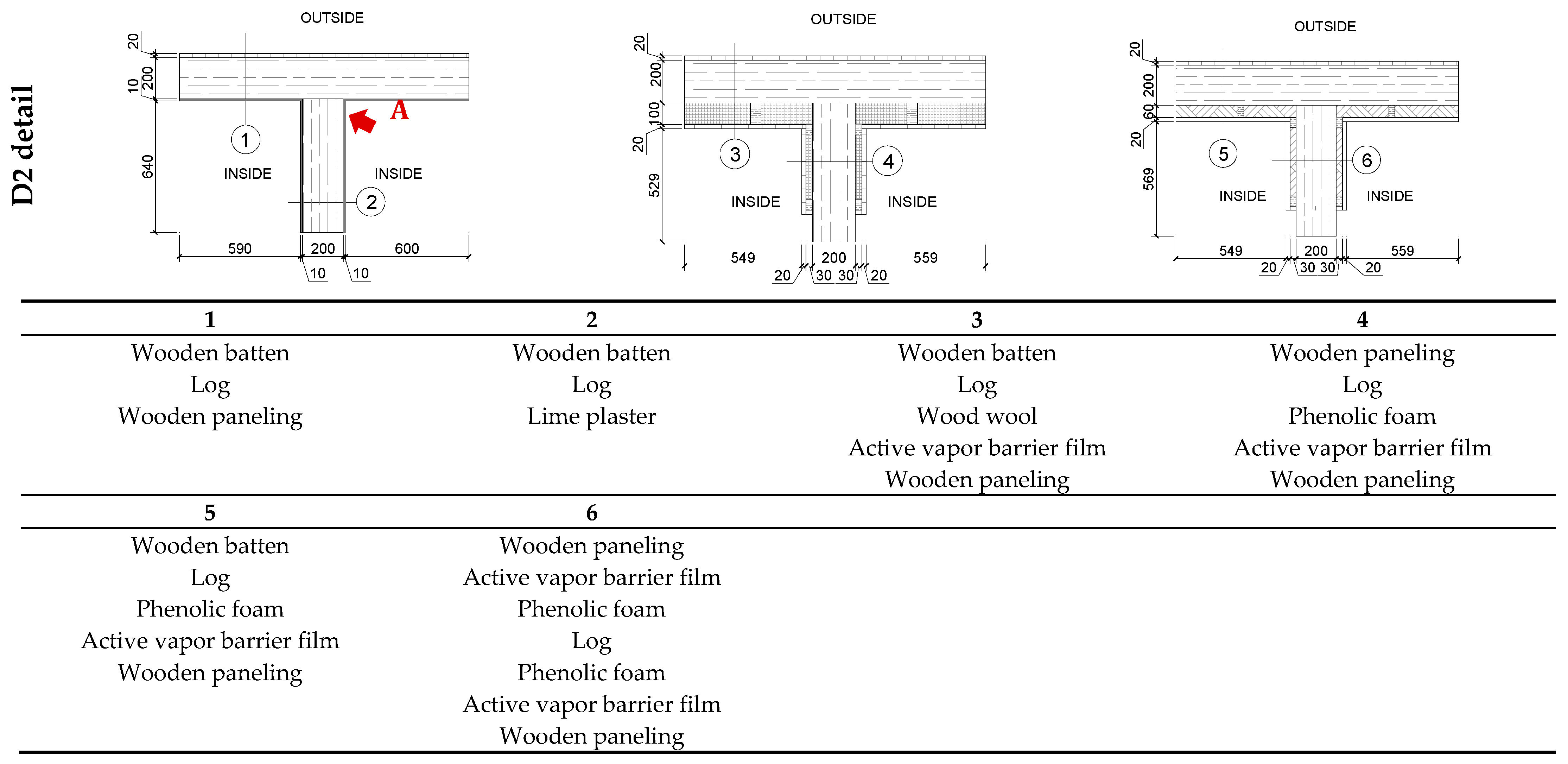 - Fedorczak-Cisak, M.; Radziszewska-Zielina, E.; Orlik-Kozdoń, B.; Steidl, T.; Tatara, T. Analysis of the thermal retrofitting potential of the external walls of podhale’s historical timber buildings in the aspect of the non-deterioration of their technical condition. Energies 2020, 13, 4610. [Google Scholar] [CrossRef]