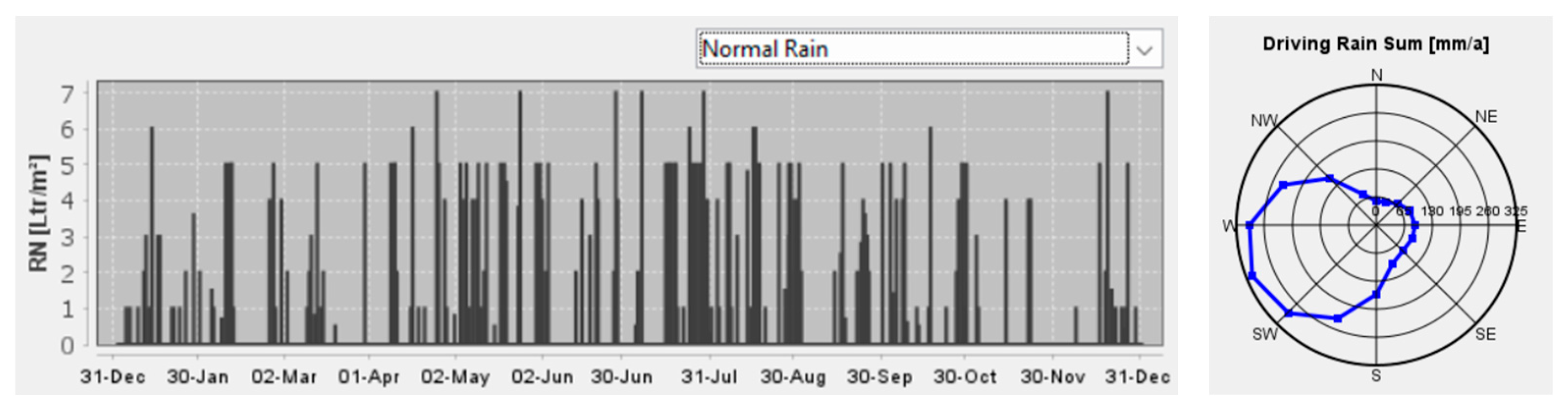 - Kunzel, H. Simultaneous Heat and Moisture Transport in Building Components. One- and Two-Dimensional Calculation Using Simple Parameters. Available online: https://www.researchgate.net/publication/41124856_Simultaneous_heat_and_moisture_transport_in_building_components_One-_and_two-dimensional_calculation_using_simple_parameters (accessed on 13 October 2025).