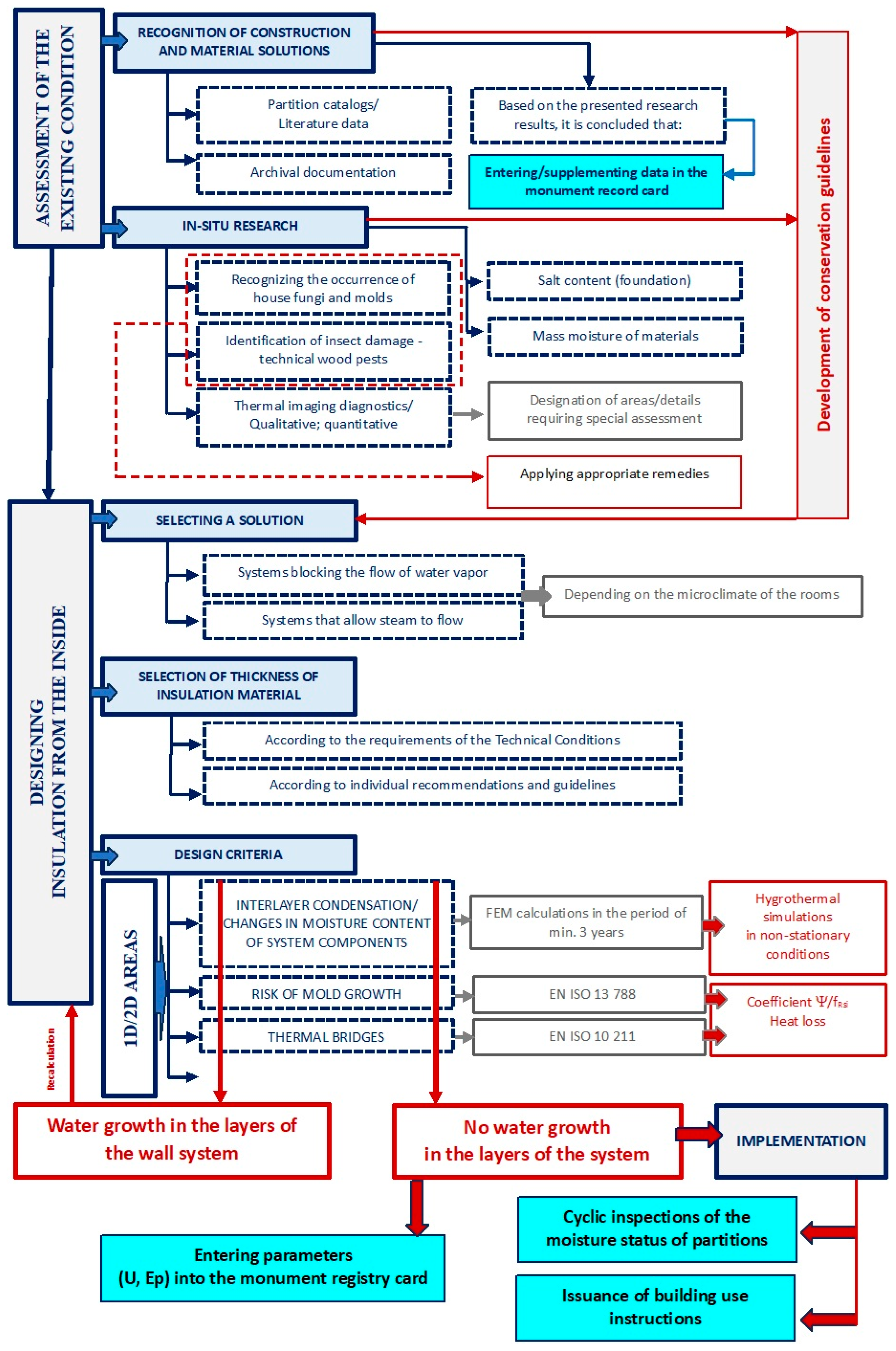 - The application of internal insulation necessitates a detailed evaluation of the potential increase in moisture content within the insulated system components, as well as the associated risk of mold growth.