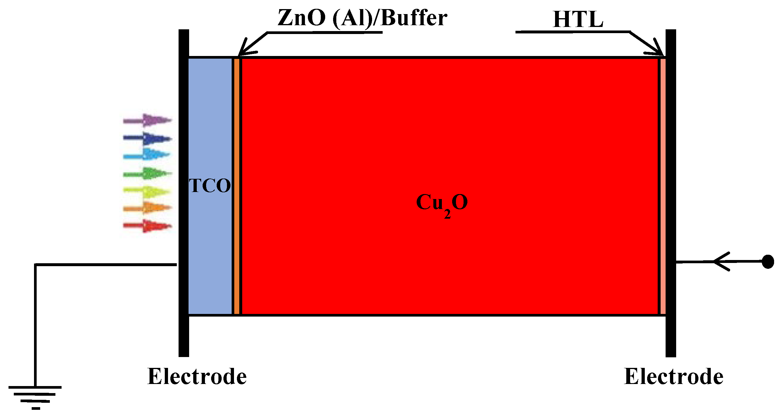29. Fentahun, D.A.; Tyagi, A.; Kar, K.K. Numerically investigating the AZO/Cu2O heterojunction solar cell using ZnO/Cds buffer layer. Opt.—Int. J. Light Electron Opt. 2020, 228, 166228. [Google Scholar] [CrossRef]