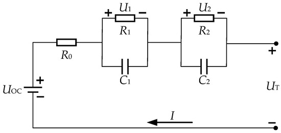 where the UT is the terminal voltage, the UOC denotes the open-circuit voltage, and the relationship between UOC and SOC can be determined through low-rate battery’s charge- discharge experiments, as detailed in Section 7.2.