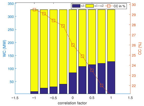 To further clarify the fuzzy optimization framework, the following summarizes the model’s inputs, outputs, and implicit rule structure. In the fuzzy optimization model, the uncertain wind power generation and the capacity credit (CC) objective are represented as fuzzy variables with corresponding membership functions. The inputs to this fuzzy model are the wind power data (for each area) and the planner’s specified capacity credit bounds, while the output is the overall satisfaction level (the membership grade of the solution). The fuzzy logic rules in this context are defined implicitly by the membership function bounds and their if–then structure.