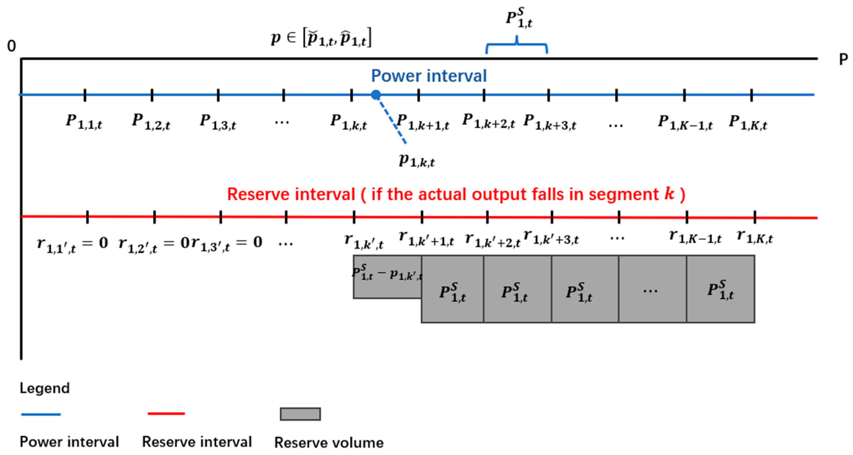 R k , k , t Reserve capacity in segment k corresponding to energy segment k at time t .