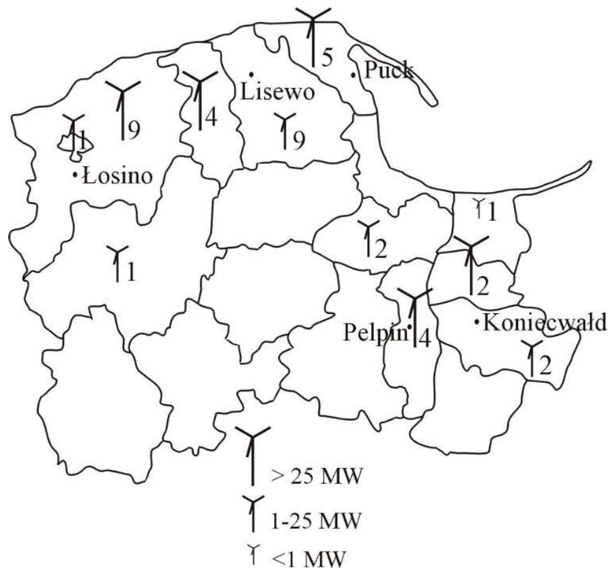 2.2. Wind Energy in the Pomeranian Voivodeship
