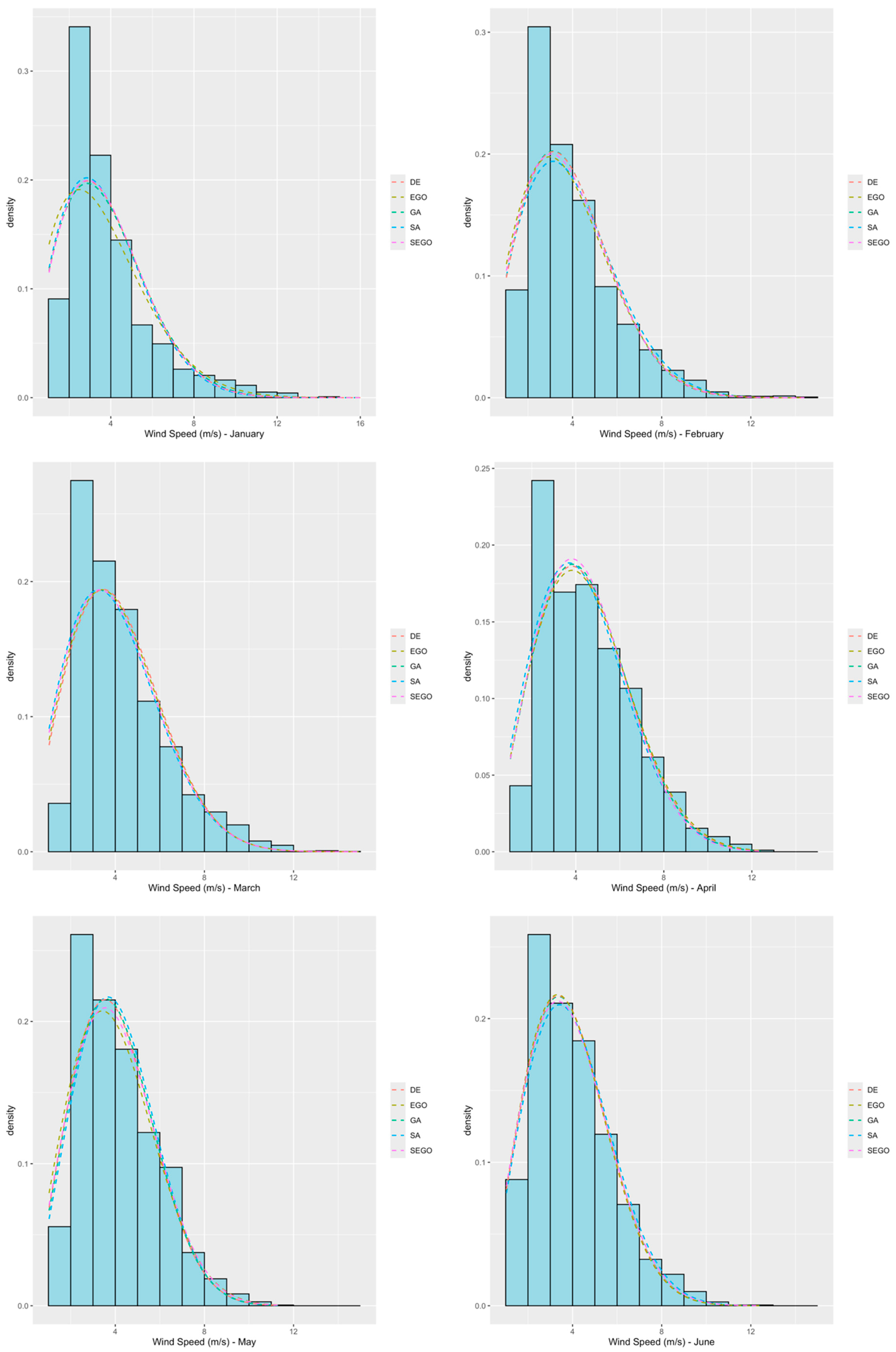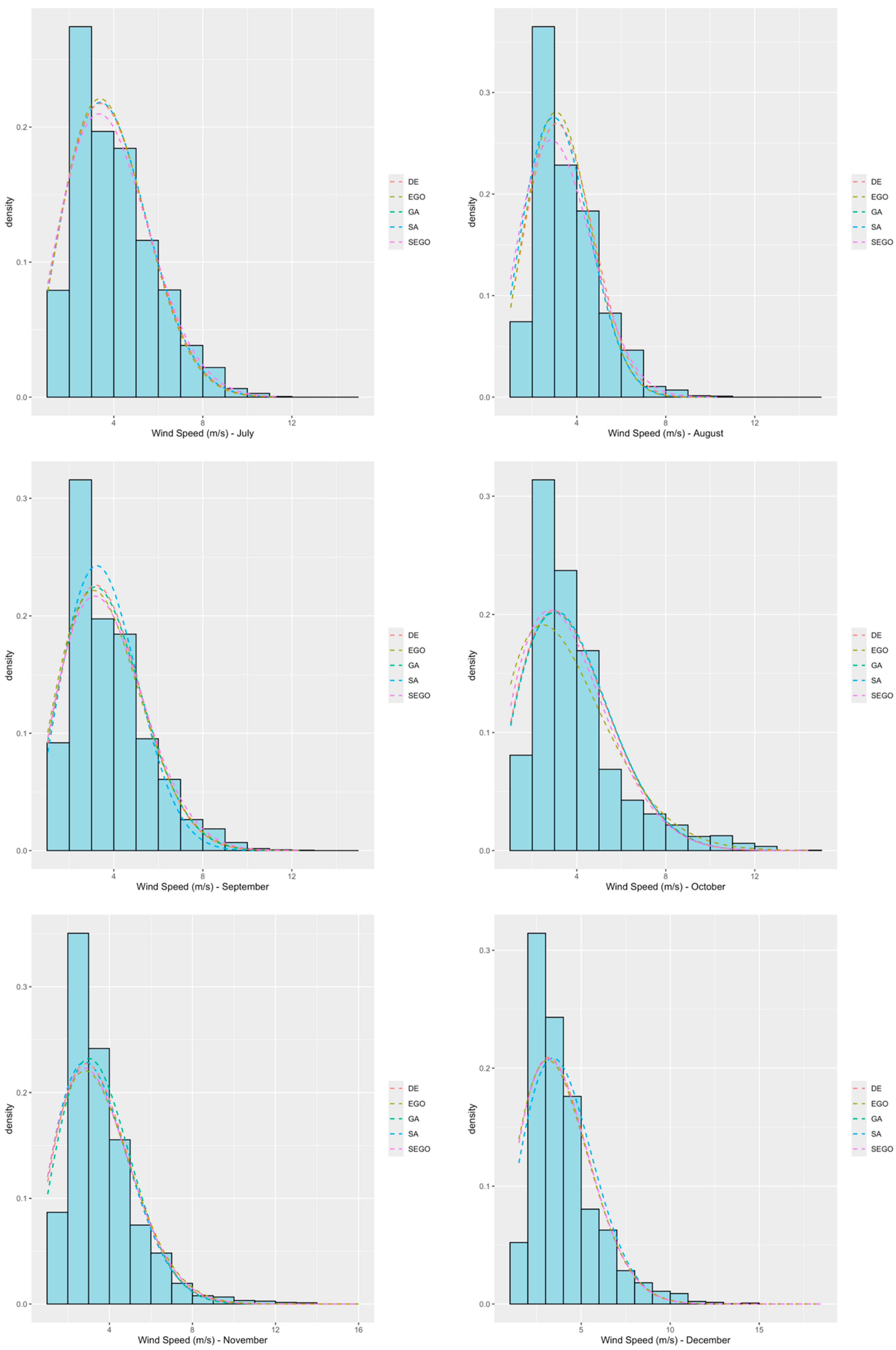 - Kumar, R.; Kumar, A. Application of differential evolution for wind speed distribution parameters estimation. Wind Eng. 2021, 45, 1544–1556. [Google Scholar] [CrossRef]