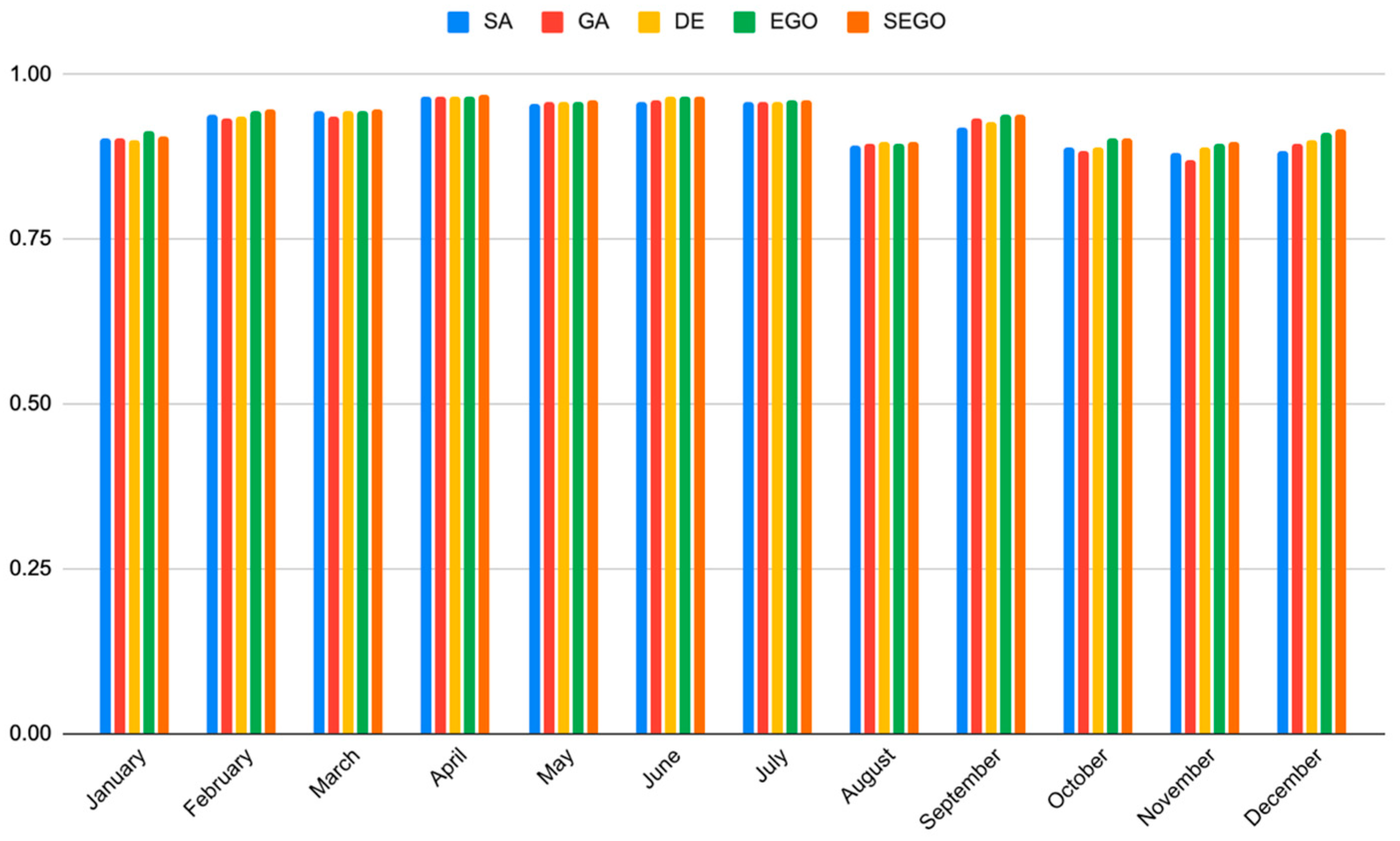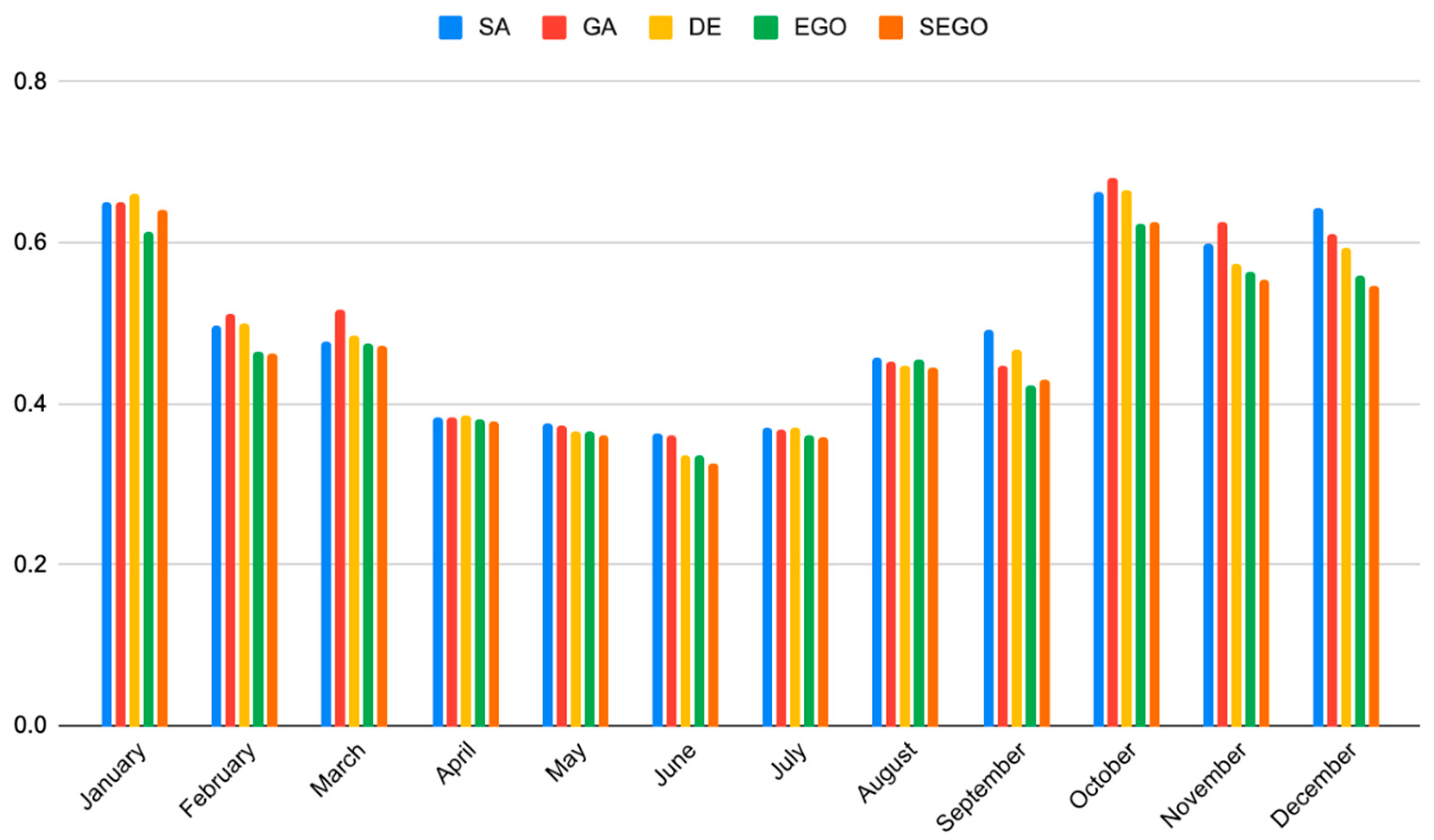 | Month | SA | GA | DE | EGO | SEGO | |||||