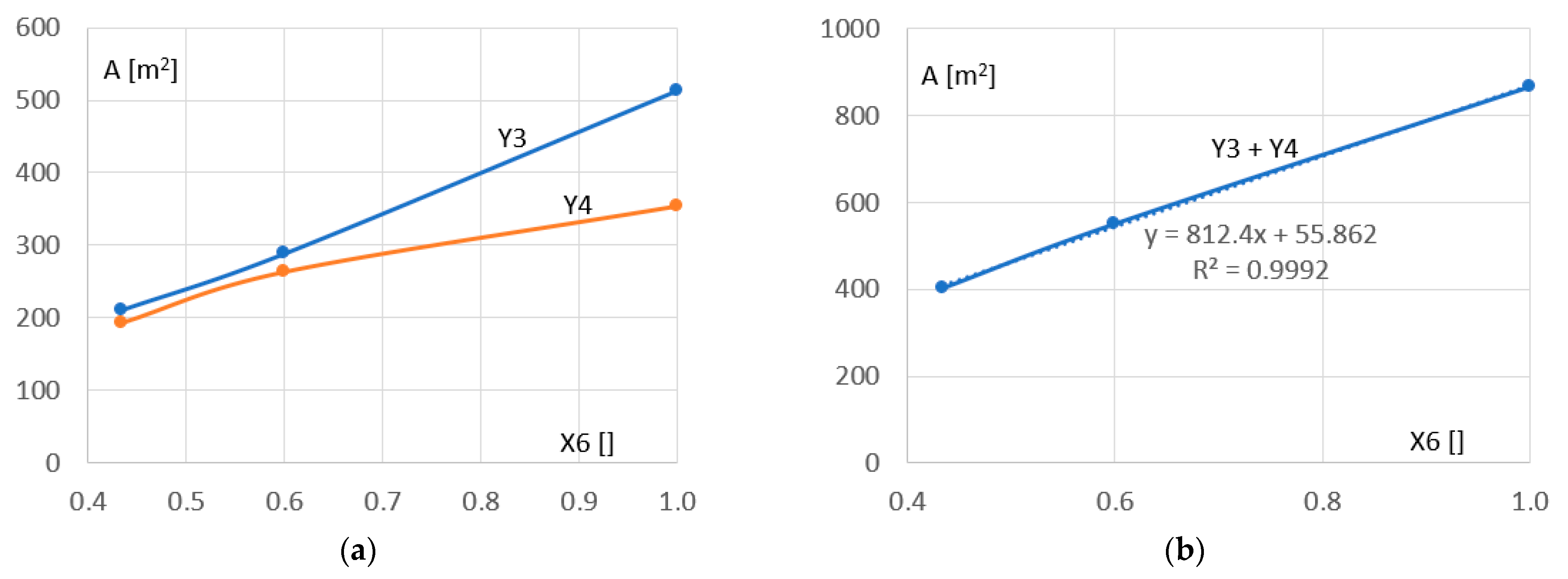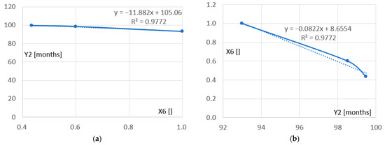 Figure 7b, where the values of Y2 are measured along the x-axis and the corresponding values of X6 along the y-axis. The difference in the curvatures of the above curves results from the different absolute value ranges of X6 and Y2. This difference can be standardized by normalizing these values. However, this is beyond the scope of this article and will be performed during broader future activities related to various building renovations.