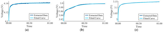 Fitting produced given system constraints. (a) First voltage pulse. (b) Mid-range voltage pulse. (c) End of test voltage pulse.
