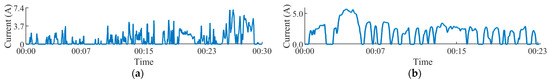 Current profiles for discharge cells. (a) WLTC. (b) HC load.