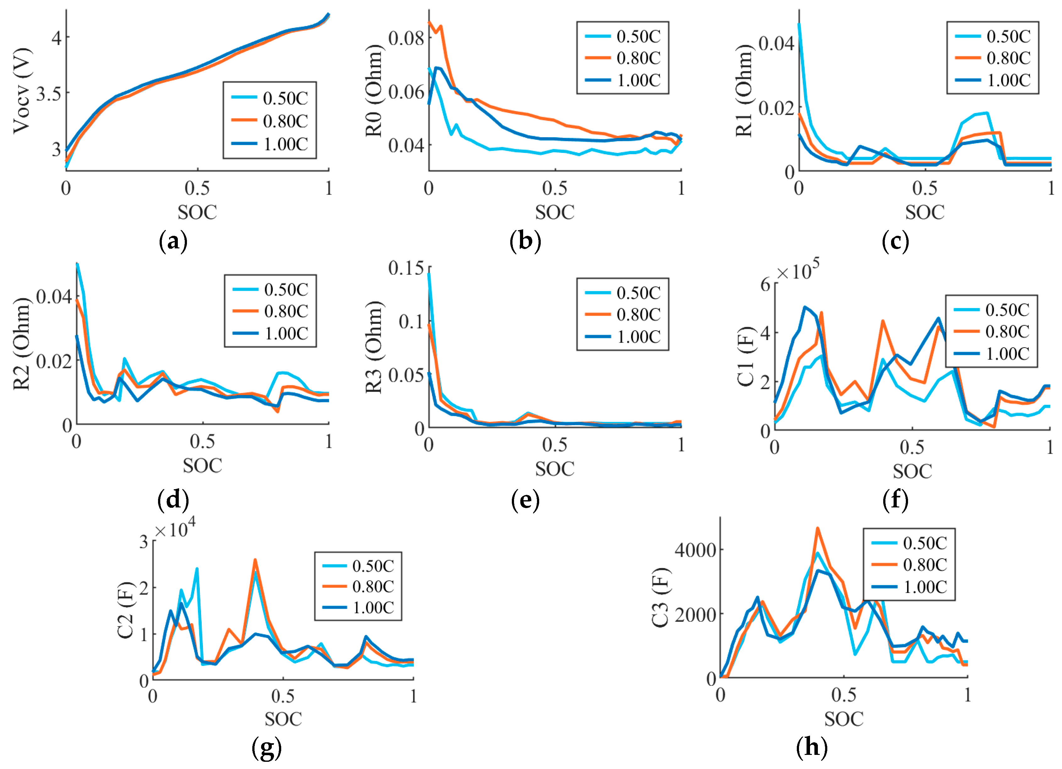 4.2. Implementing the Thevenin 3-RC Circuit in Simulation