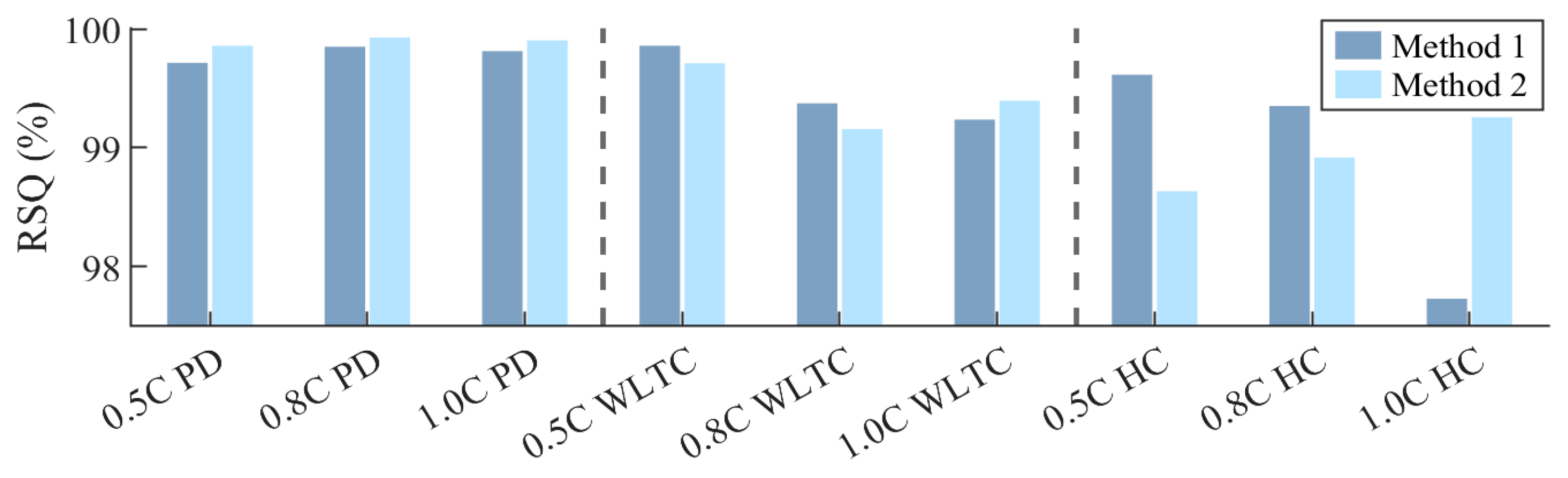 | C-Rate (C) and Profile 1 | Method 1 | Method 2 | ||