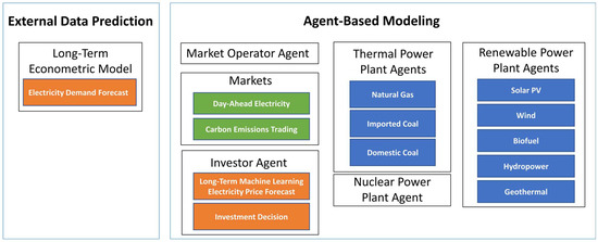 - Kell, A.; Forshaw, M.; McGough, A.S. ElecSim: Monte-Carlo Open-Source Agent-Based Model to Inform Policy for Long-Term Electricity Planning. In Proceedings of the e-Energy 2019: Proceedings of the 10th ACM International Conference on Future Energy Systems, Phoenix, AZ, USA, 25–28 June 2019; pp. 556–565. [Google Scholar]