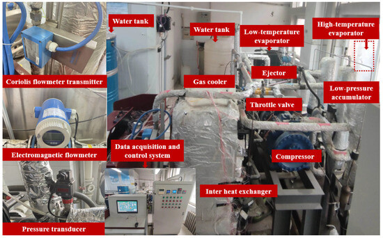 As shown in Figure 6, the experimental platform of the CTHP system was established by modifying the conventional TCHP system in our previous studies. The information on the primary equipment in the CTHP system is not listed in this section but are not presented for simplicity, which can be found in previous publications [24]. The data acquisition devices used in this experiment are listed in Table 1. The maximum uncertainty for the system COP was 0.5417% [24].