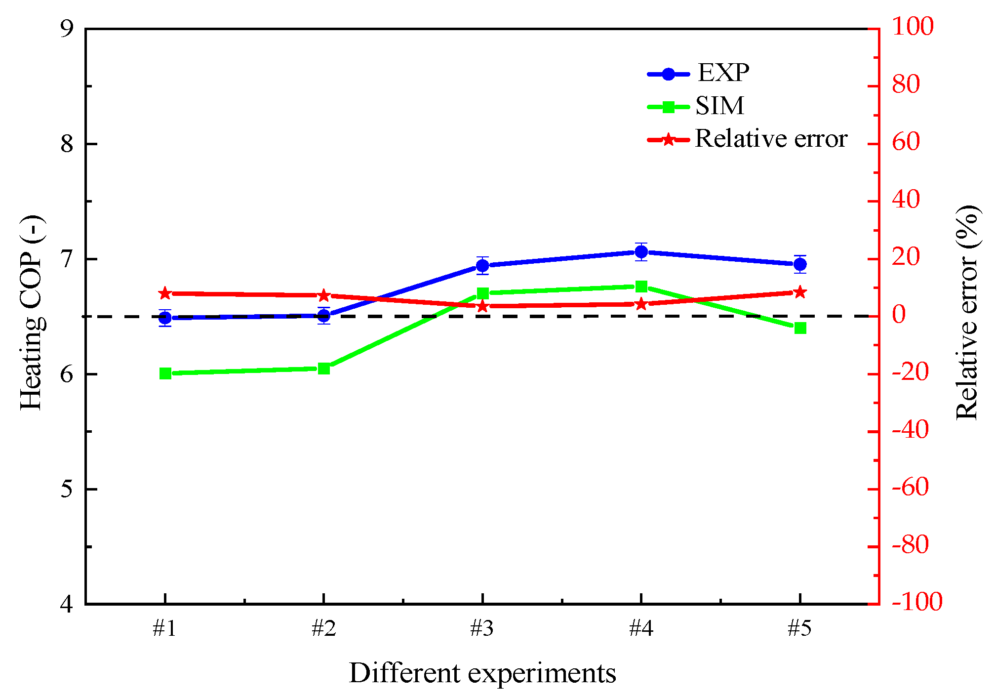 - Li, D.; Ma, K.; Yang, W. Experimental study on the influence of intermediate loop water supply temperature on the characteristics of air-water source coupling heat pump system. Geothermics 2025, 125, 103153. [Google Scholar] [CrossRef]