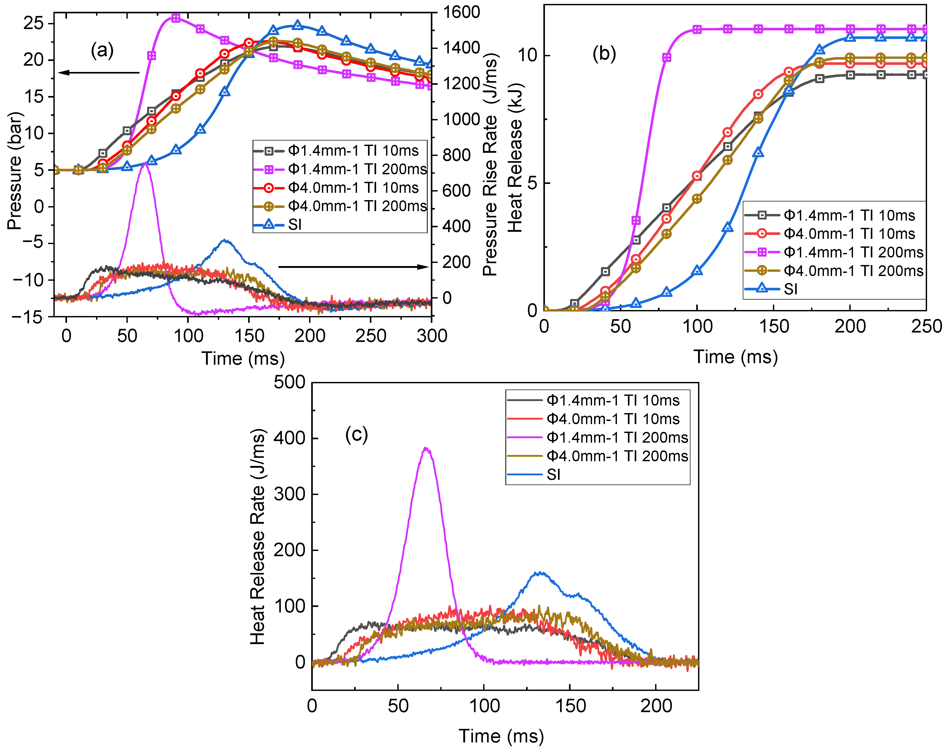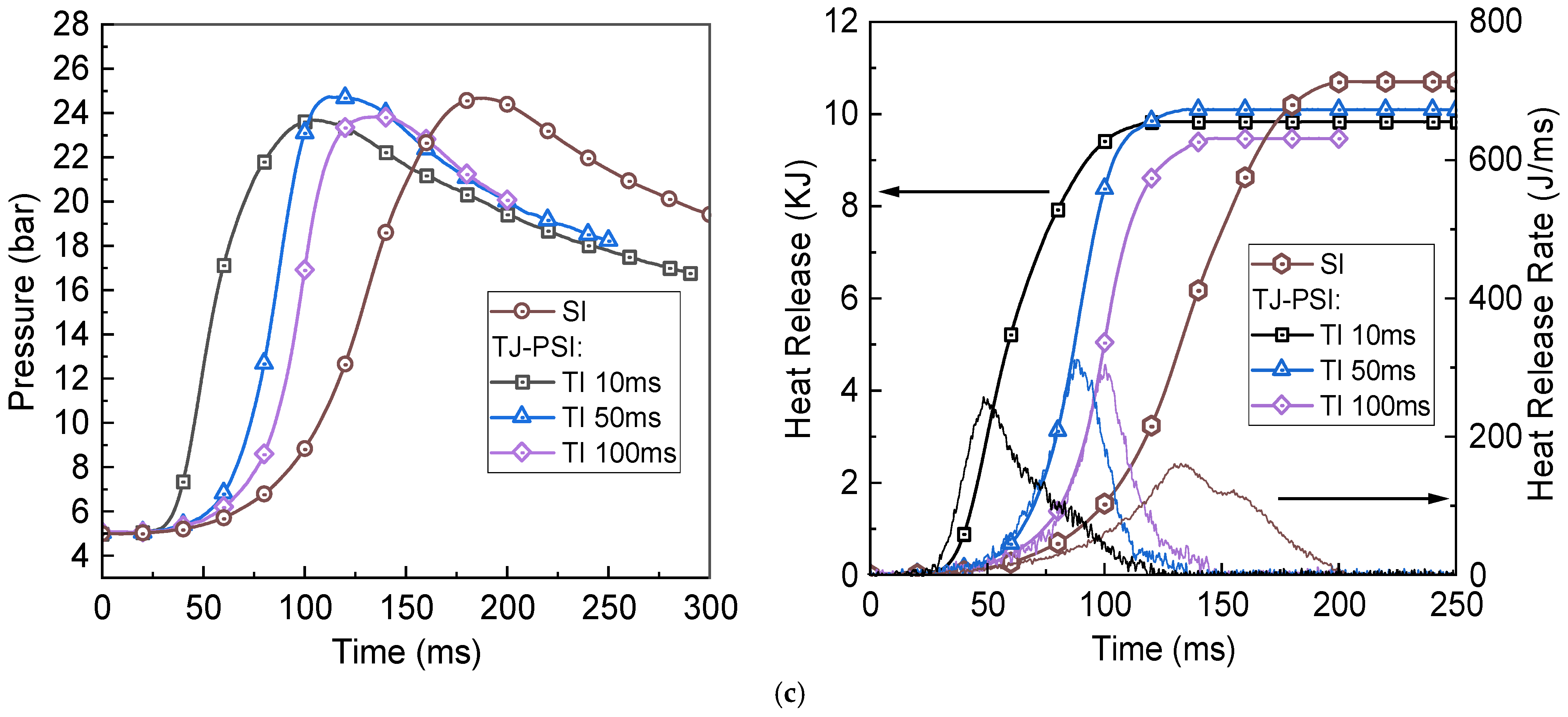 4.1. The Influence of Pre-Chamber Orifice Diameter on the Combustion Characteristics of TJ-PSI Strategy