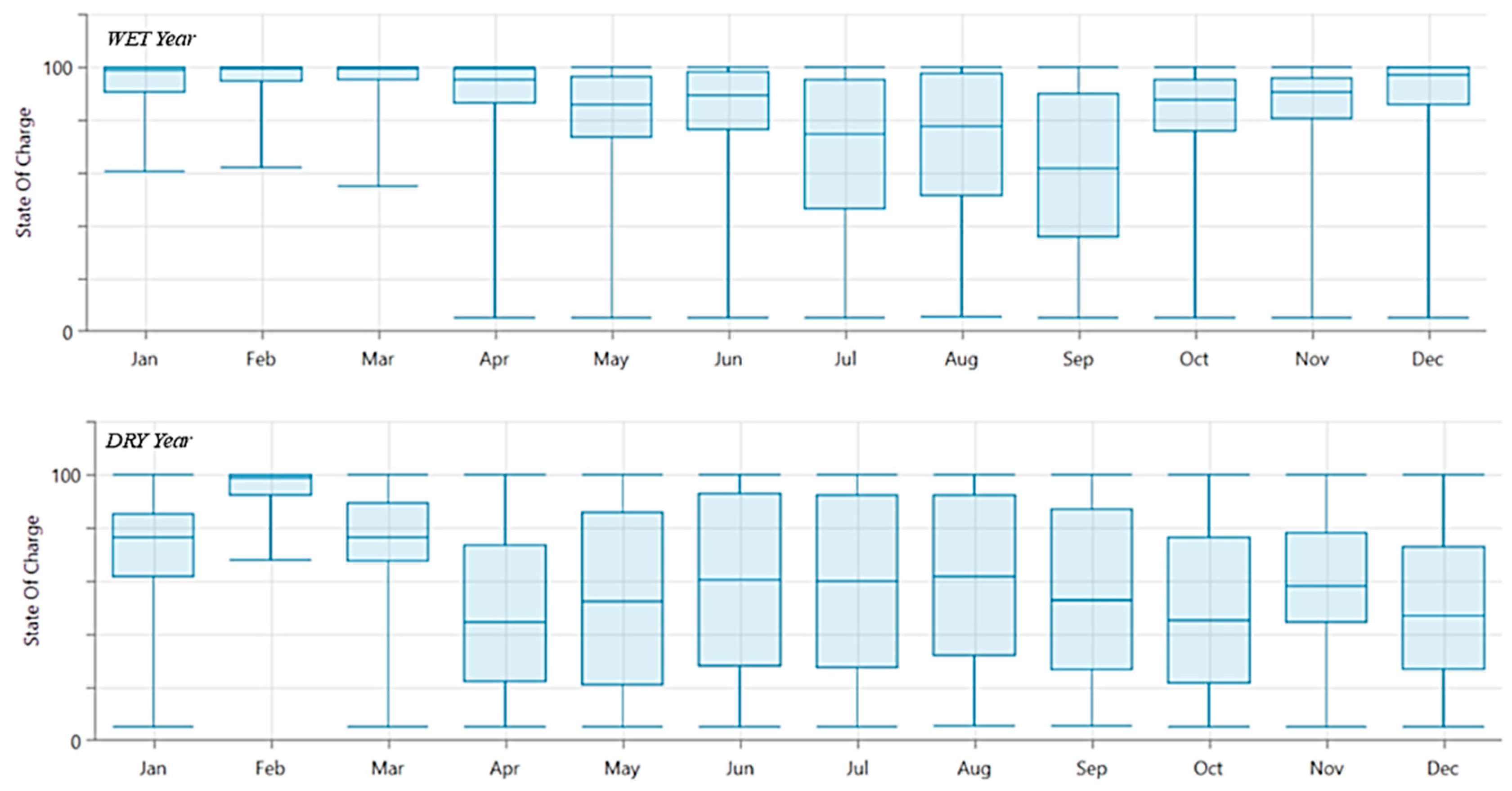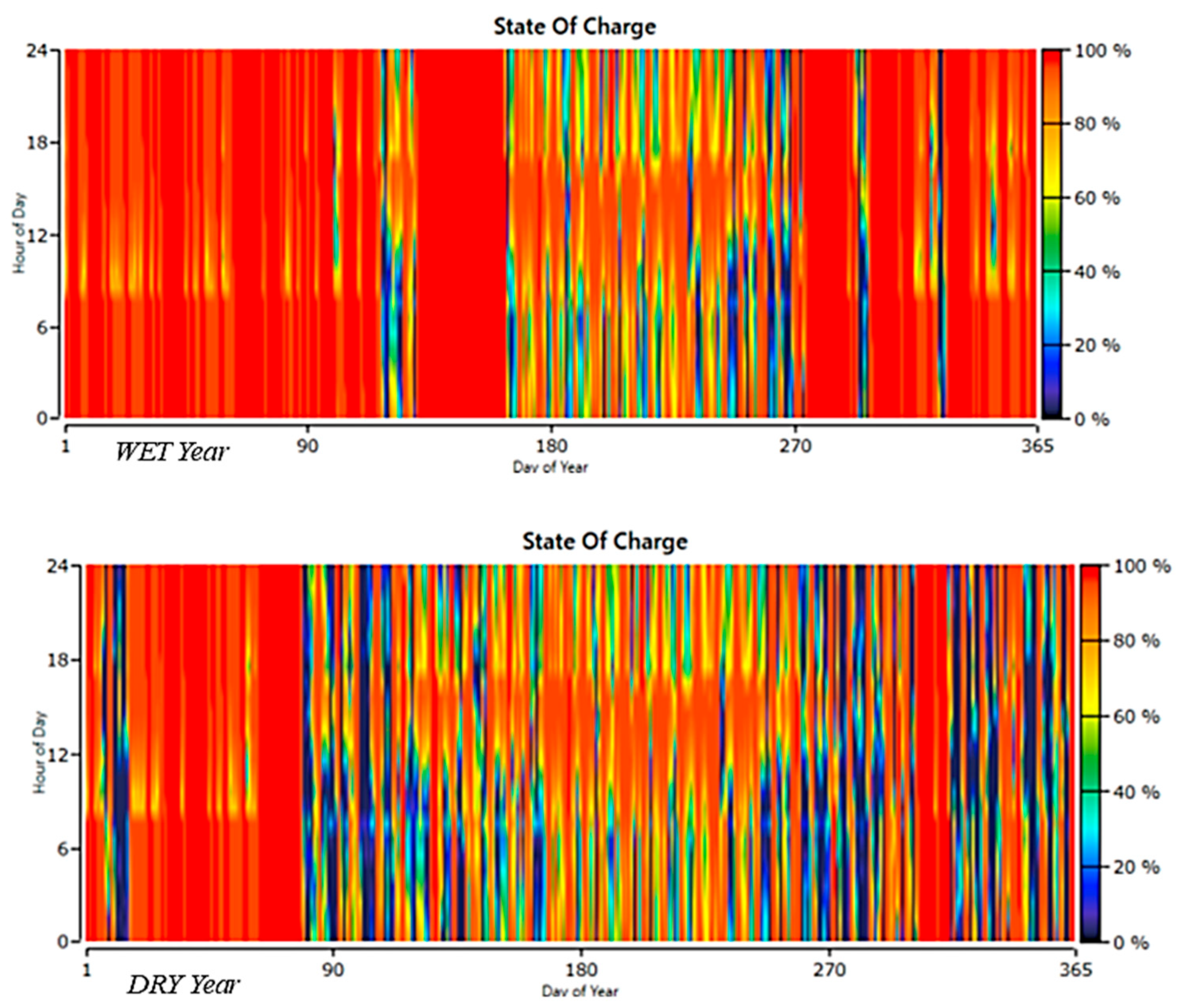 Battery CapacitySS% (Dry Year)SS% (Wet Year)Improvement ΔSS% (Dry Year)Improvement ΔSS% (Wet Year)