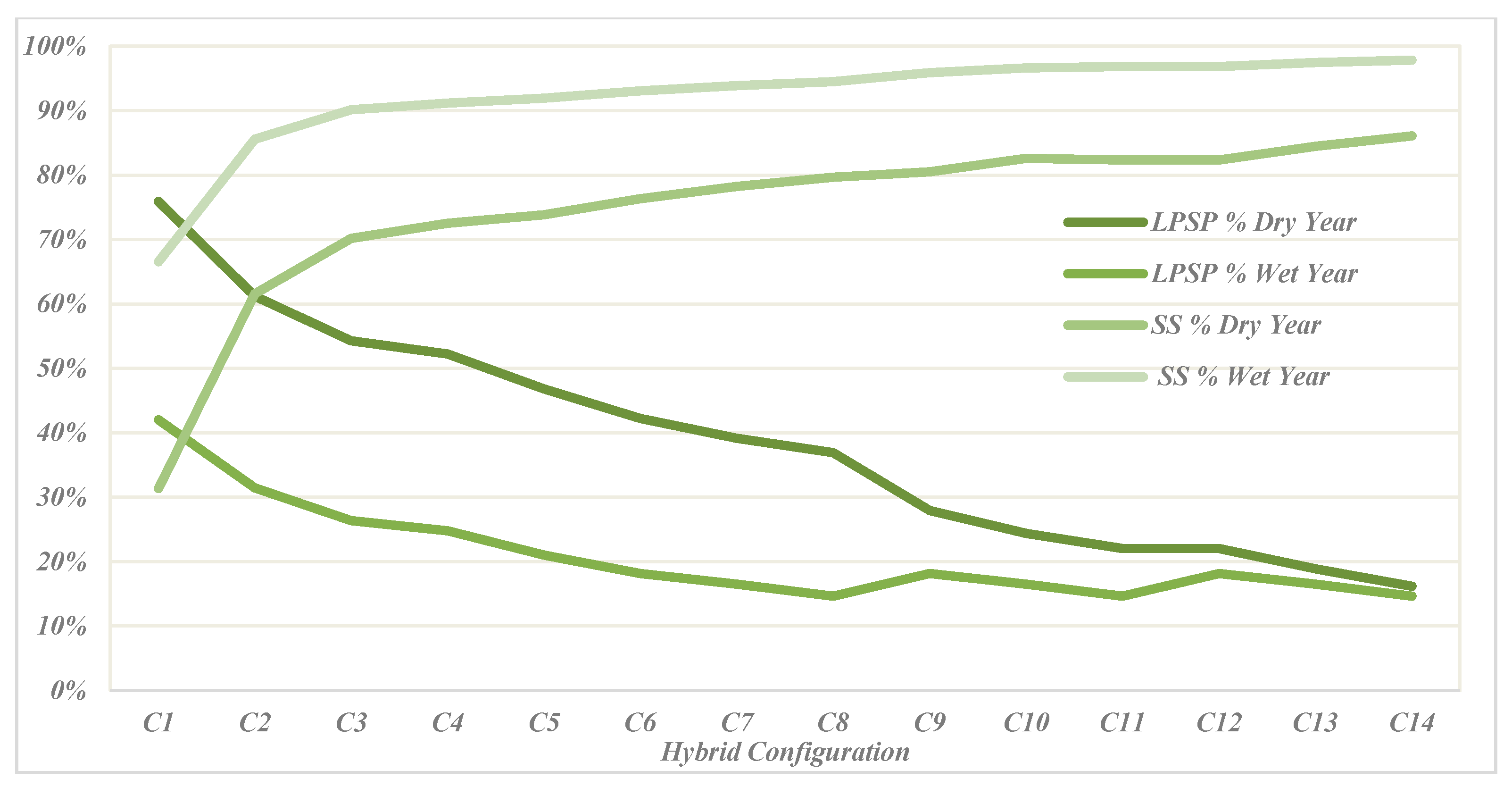 ConfigSS% (Dry)SS% (Wet)LPSP% (Dry)LPSP% (Wet)Curtailment (kWh, Dry)Curtailment (kWh, Wet)