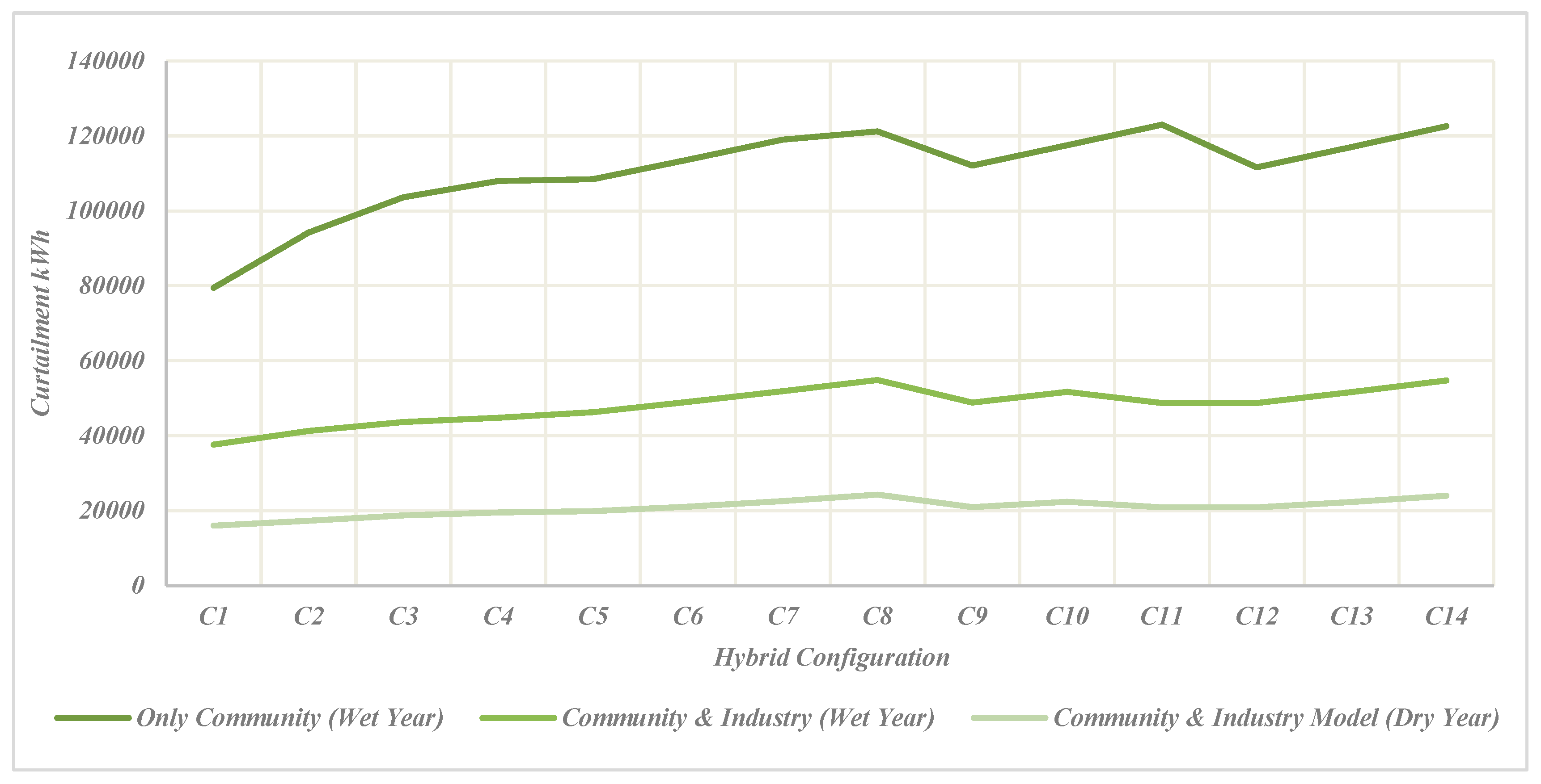 Table 4. Technical KPIs for hybrid configurations (C1–C14).