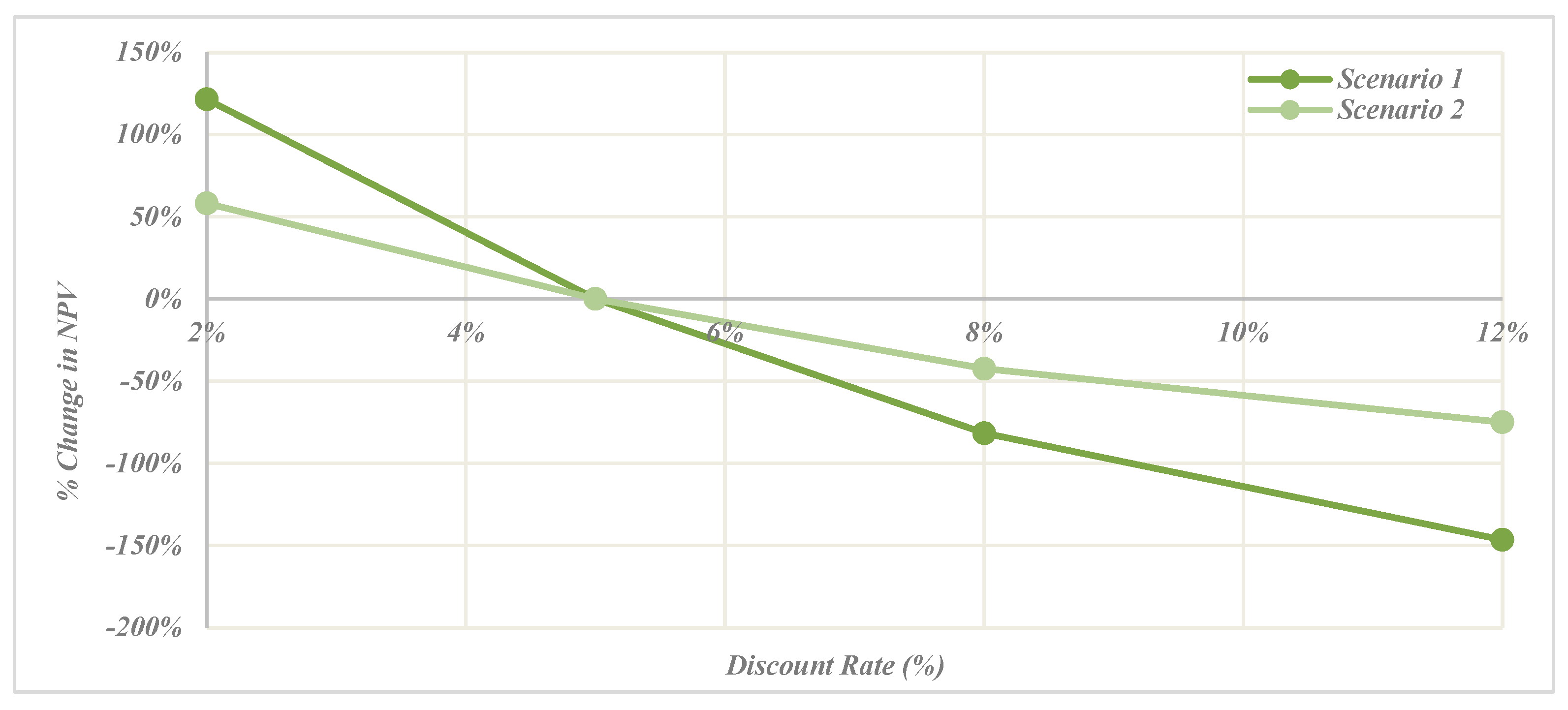 Figure 21. % change in NPV with different discount rates.