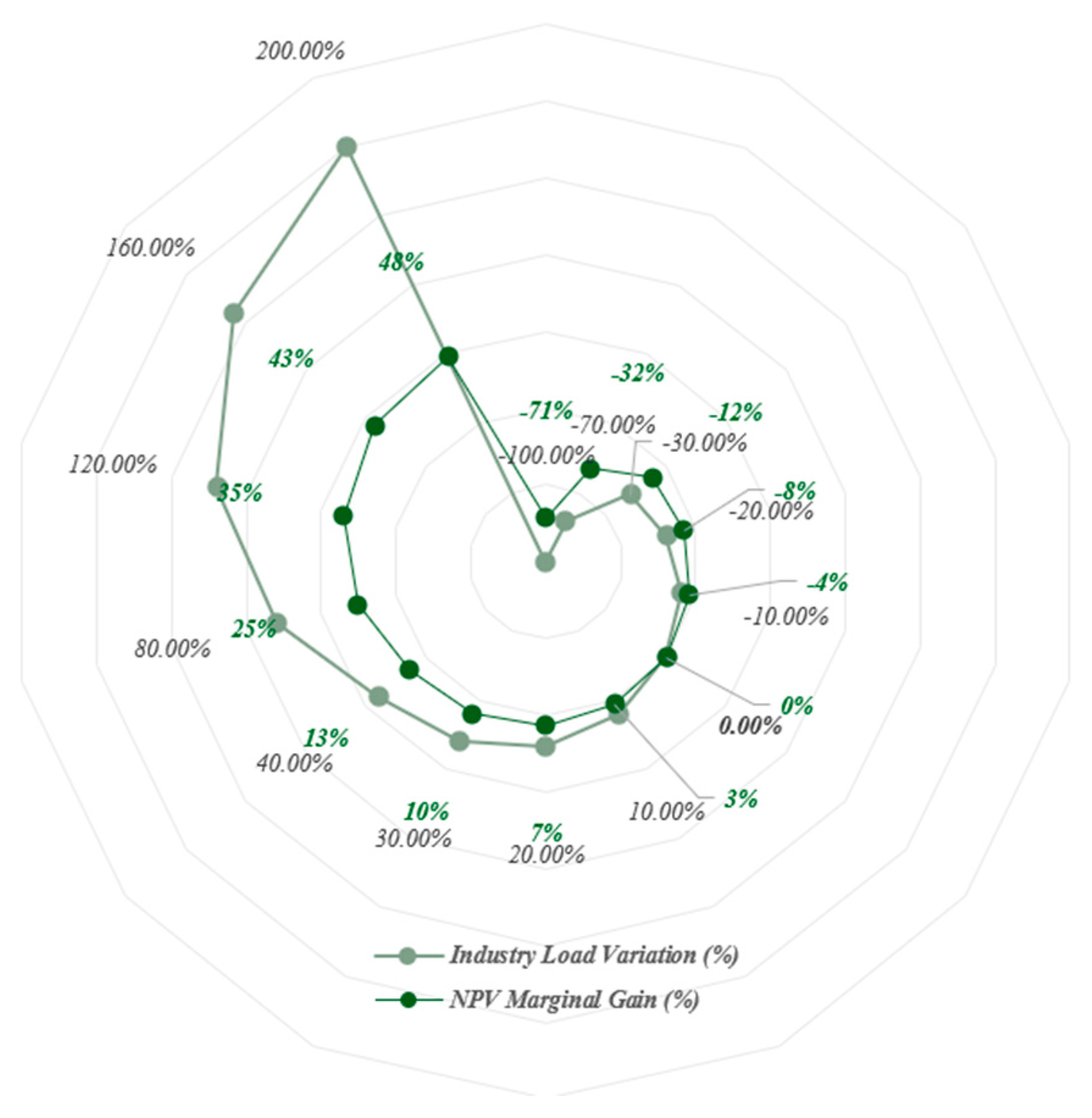 Figure 24. NPV sensitivity for industry load variation.