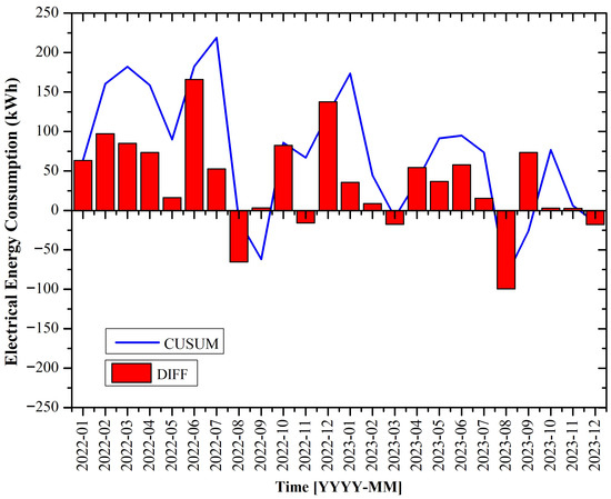 CUSUM and DIFF analysis of electricity consumption over a continuous 24-month period.