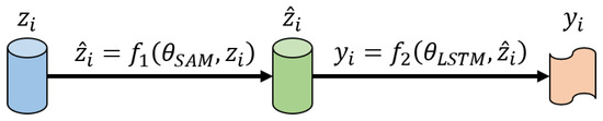 where f represents the proposed TLSAM-LSTM model mapping from to , and represent the mapping function of related neural networks, and mean the algorithm parameters in brief, and is all parameters of the proposed TLSAM-LSTM method.