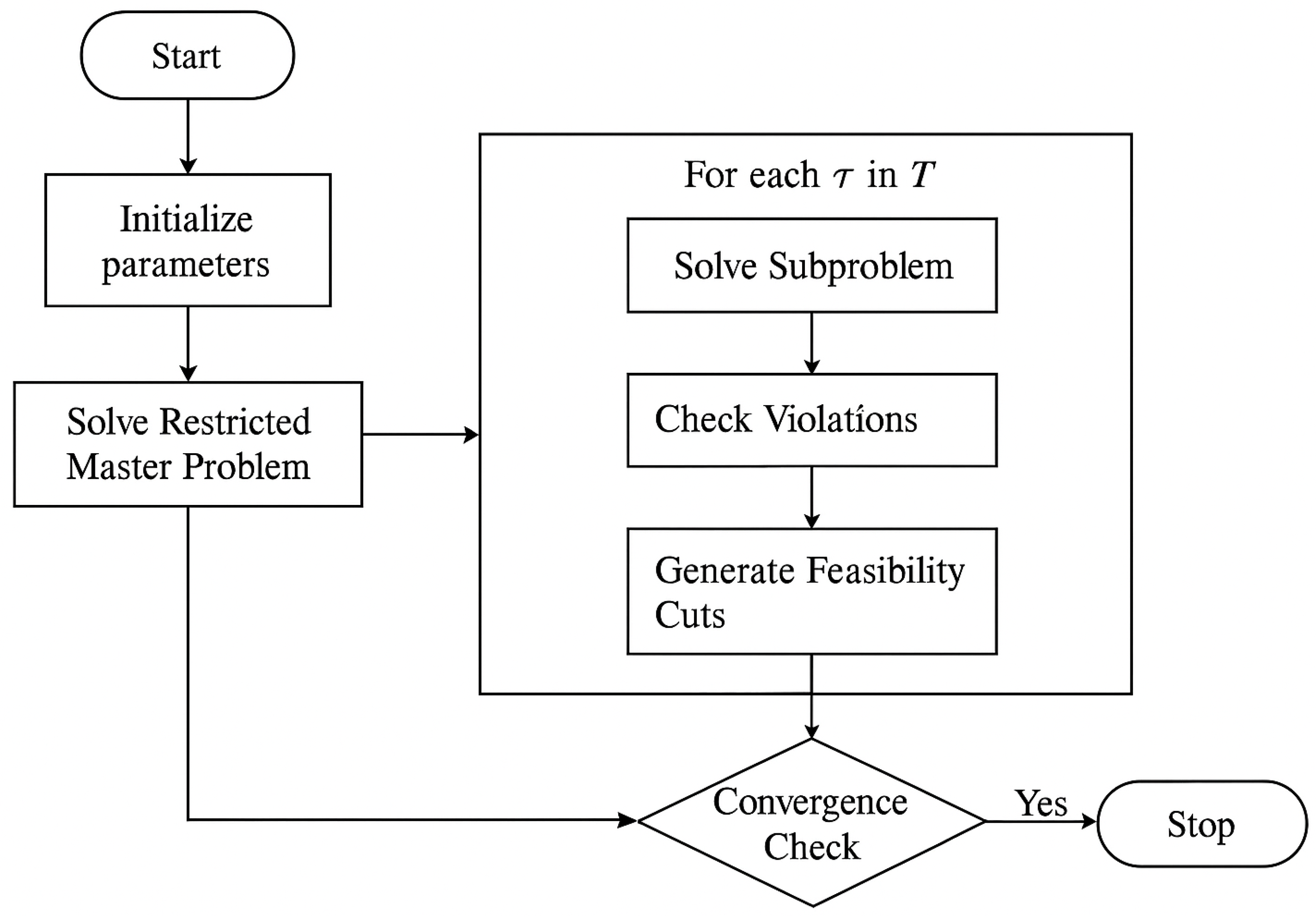 In this work, the C & CG procedure iteratively solves a master problem and a sequence of subproblems, progressively refining the feasible region until convergence is reached. The master problem contains the investment and operation decisions with a restricted set of constraints, while the subproblem—parameterized by the current master solution—identifies worst-case realizations within the ambiguity set that could violate feasibility or degrade objective performance. If such scenarios are found, corresponding feasibility or optimality cuts are generated and added back to the master problem. This process continues until no further cuts are produced, ensuring that the final solution is robust against all admissible uncertainty realizations. By integrating this iterative cut generation framework into the DRO-based GFES planning model, the approach captures the interplay between discrete investment choices, continuous operational dynamics, and stochastic variability. The design of the subproblem ensures computational tractability through convex reformulations, while the cut-management strategy limits problem growth and accelerates convergence. As a result, the proposed methodology is scalable to realistic microgrid systems and provides a transparent, step-by-step pathway for replication and extension in related robust planning contexts.