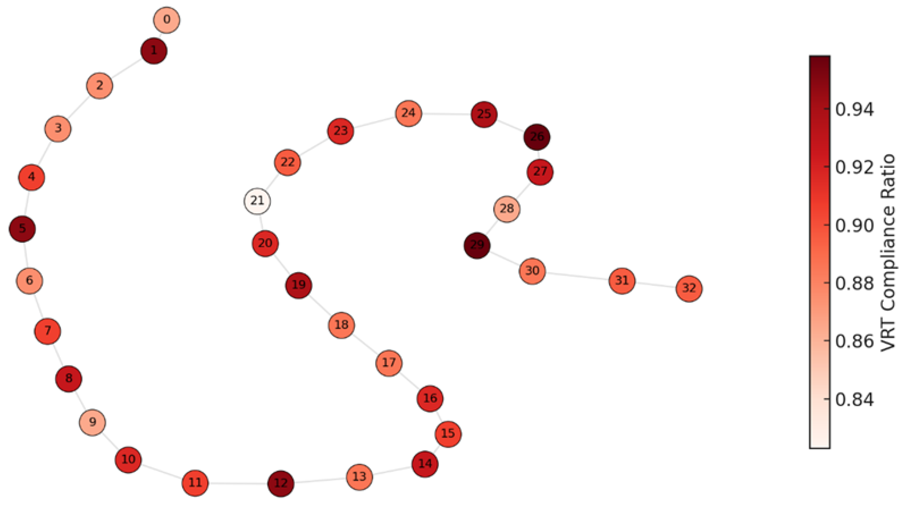 Figure 8. VRT performance onto the IEEE 33-bus topology.