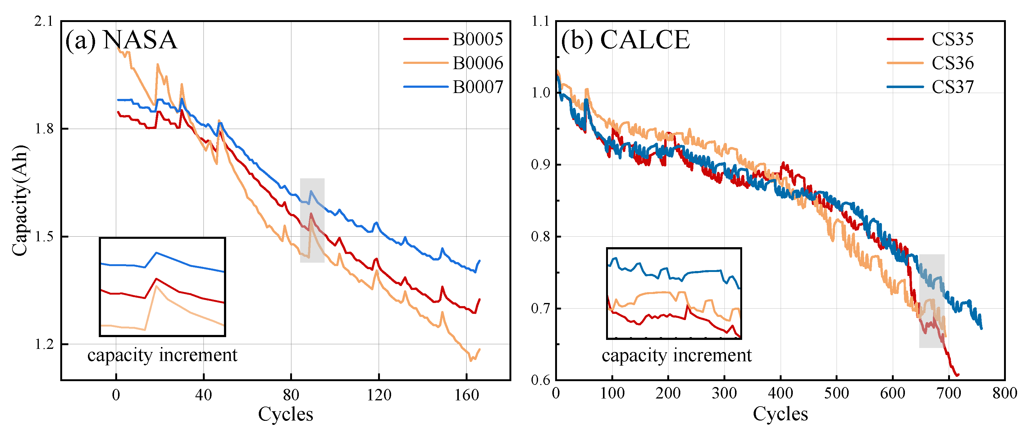 4.2.2. Comparison of the NASA and CALCE Datasets