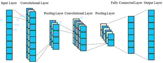 The CNN model employs local connectivity and weight sharing mechanisms to perform high-dimensional mapping transformations on raw data, enabling efficient extraction of data features. Its network layers are primarily composed of convolutional layers, pooling layers, and fully connected layers. As shown in Figure 1, this structural design significantly reduces the number of weights and the complexity of the network model. In convolutional layer operations, CNN drastically cuts the number of training parameters through neuron local connectivity and convolution kernel weight sharing strategies, improving model training speed and enabling more effective extraction of feature information from raw data. The pooling layer abstracts raw data to reduce feature dimensions, effectively decreasing training parameters, alleviating model overfitting, and enhancing the extraction efficiency of feature data.