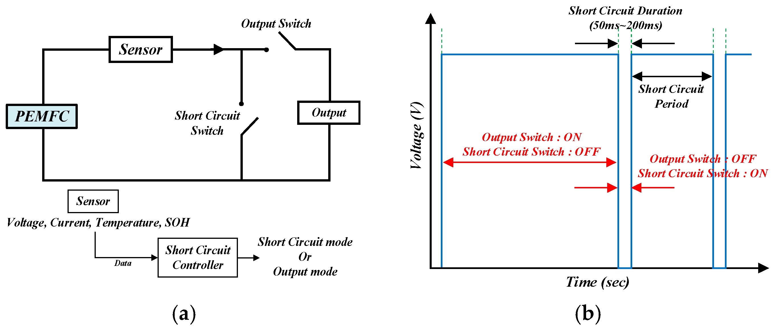 19. Gupta, G.; Wu, B.; Mylius, S.; Gregor, J.O. A systematic study on the use of short circuiting for the improvement of proton exchange membrane fuel cell performance. Int. J. Hydrogen Energy 2017, 42, 4320–4327. [Google Scholar] [CrossRef]