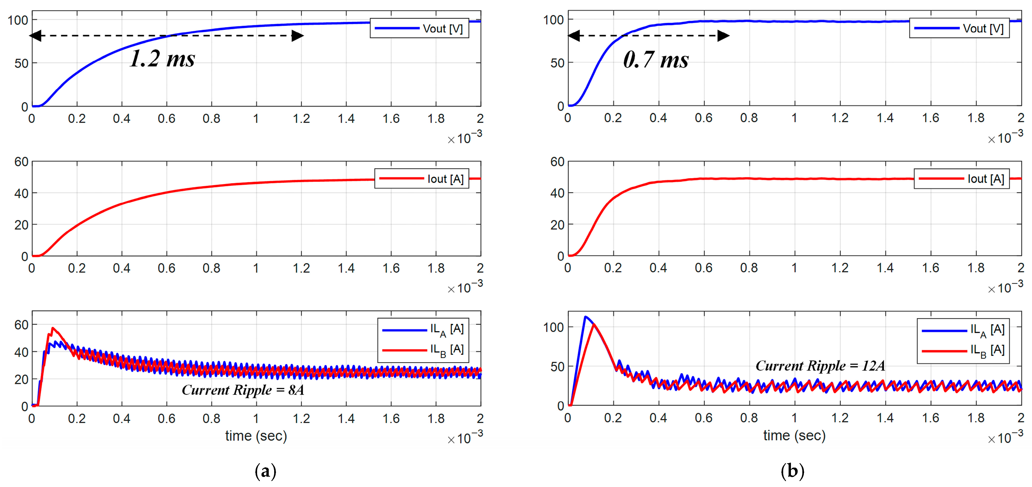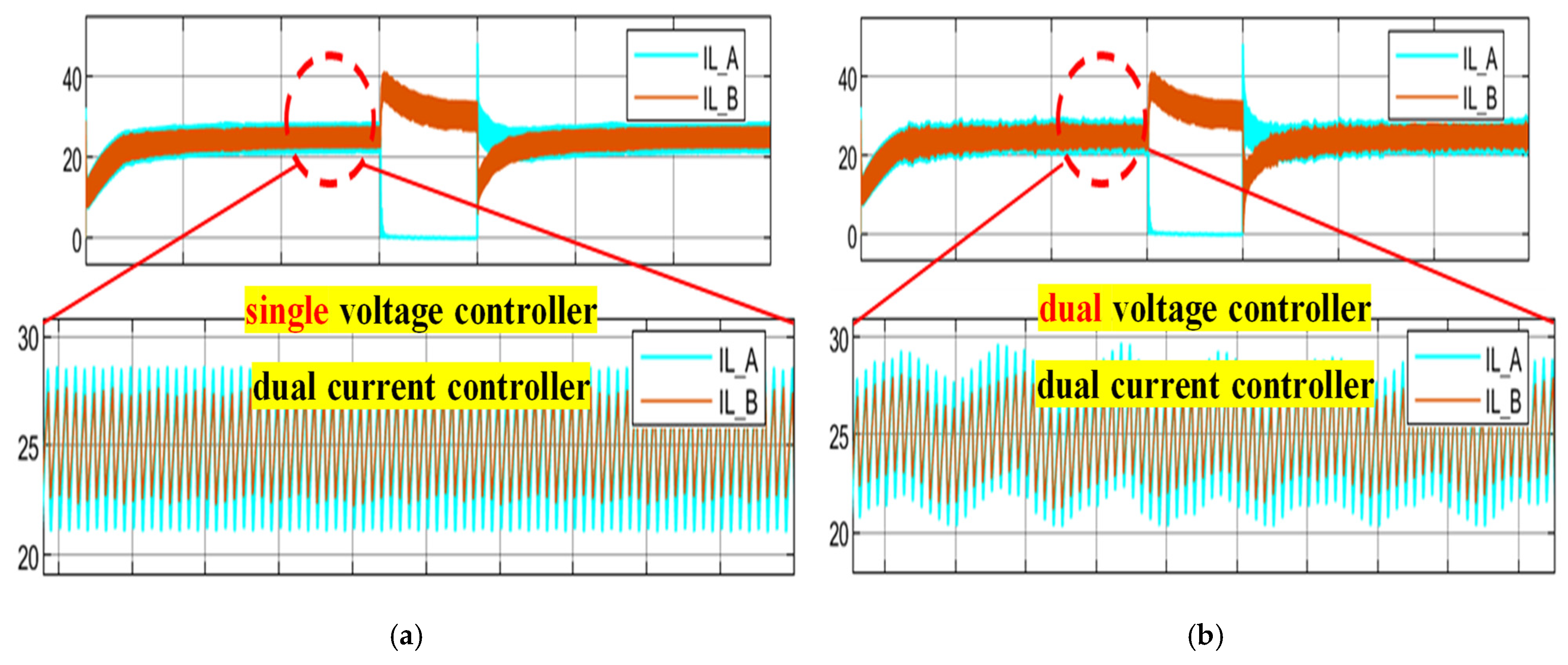 Figure 12. Output characteristics of the inductor current: (a) single voltage controller with dual current controller (b) dual voltage controller with dual current-controller.