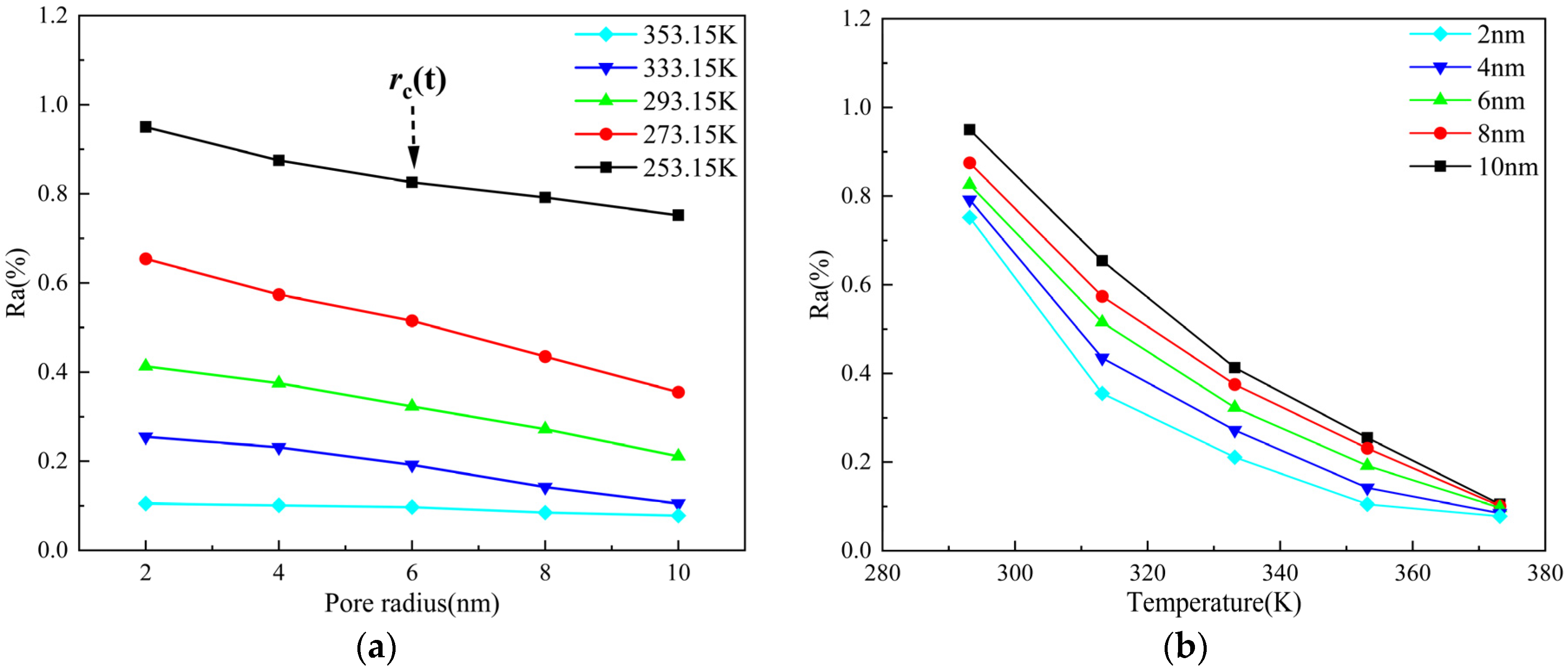 Figure 14. Quantitative evaluation of shale oil under (a) pore size and (b) temperature conditions.