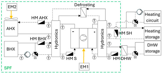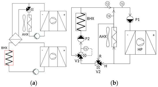 If the AHX and BHX are integrated in one hydraulic circuit, as shown in Figure 2b, the two sources are connected in the same hydraulic circuit to an HP.