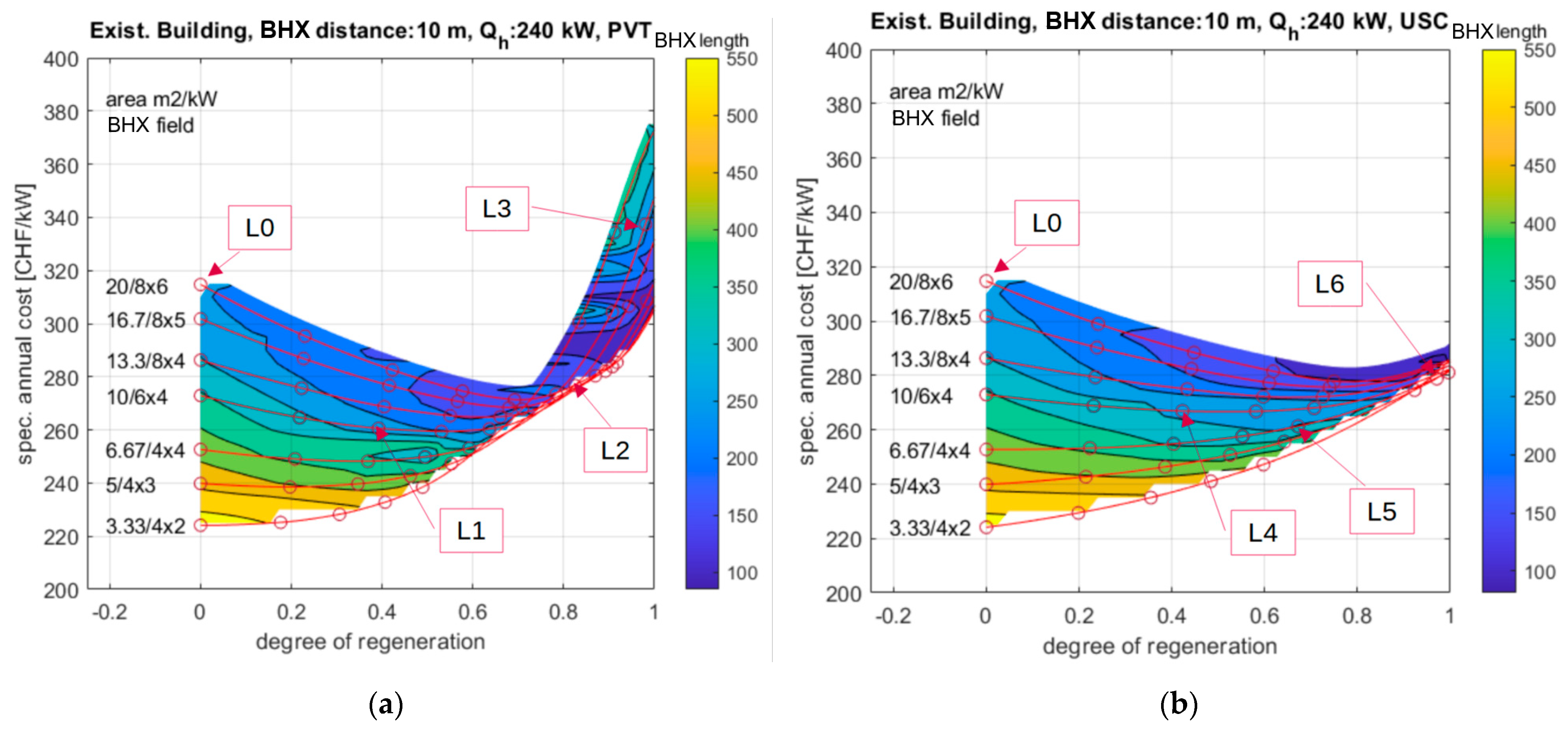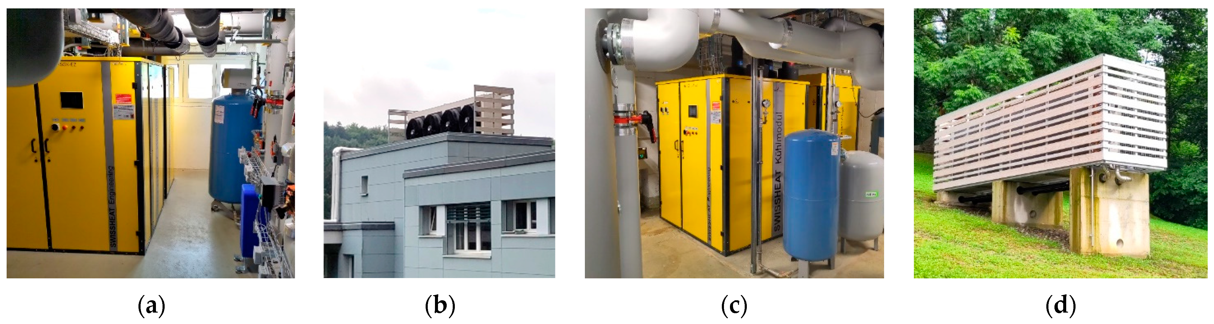 - Bätschmann, M.; Büttgenbach, S.; Caflisch, M.; Willim, M. Findings on Geothermal Probe Regeneration Using the Example of a Double Multi-Family House in Ländisch, Final Report (in German), Energieschweiz, Berne. 2021. Available online: https://www.bfe.admin.ch/bfe/de/home/versorgung/energieeffizienz/umgebungswaerme.exturl.html/aHR0cHM6Ly9wdWJkYi5iZmUuYWRtaW4uY2gvZGUvcHVibGljYX/Rpb24vZG93bmxvYWQvMTA3OTU=.html (accessed on 20 August 2025).