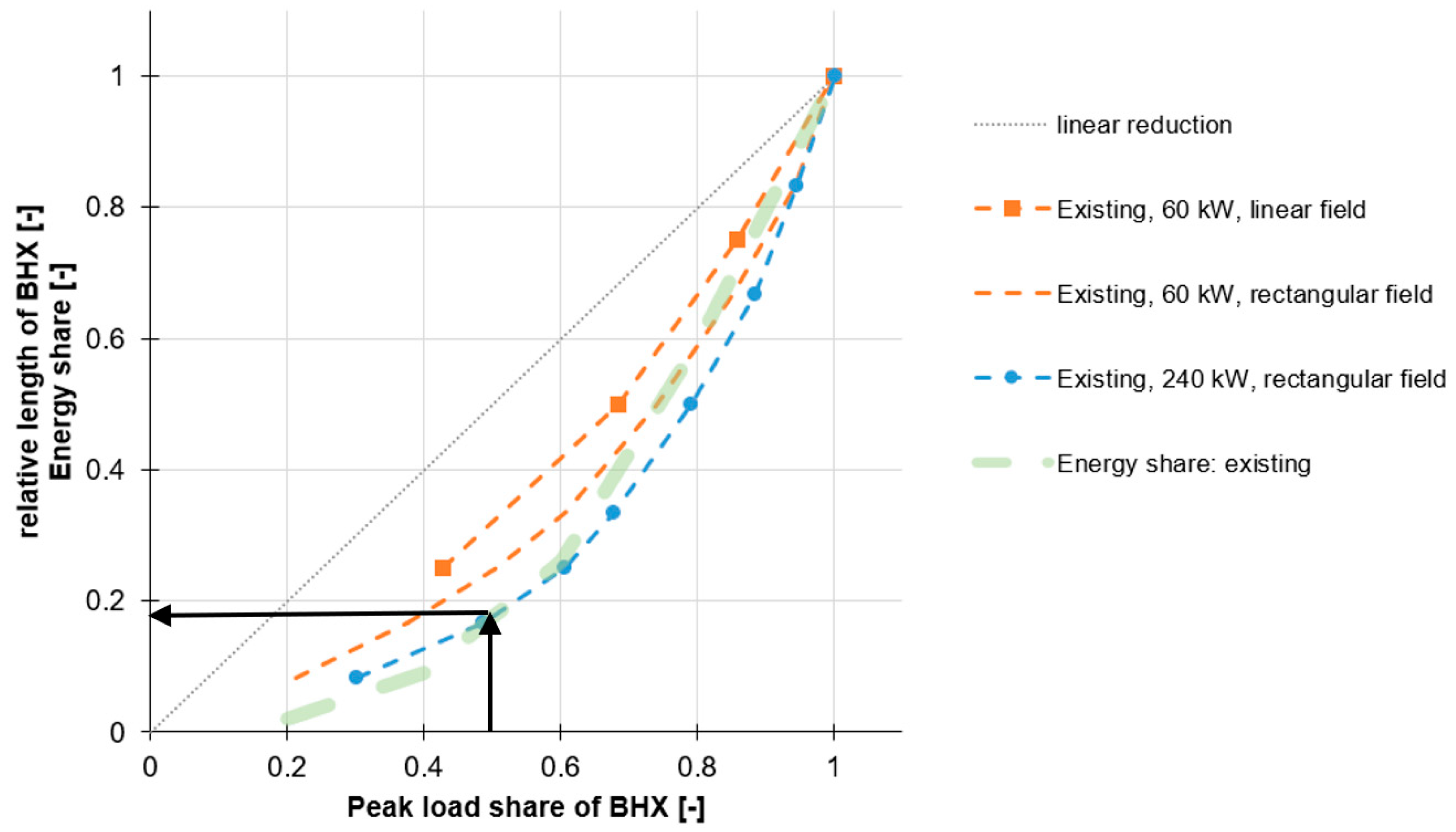 - The system layout is fixed by the installed systems, i.e., no variants regarding design of the source system can be verified, e.g., in terms of probe number, probe distance and probe depth. The system, though, has been adapted to the limitations of the site, and the resulting system layout is thus a typical compromise based on the boundary conditions and reflects typical practical limitations for many sites.