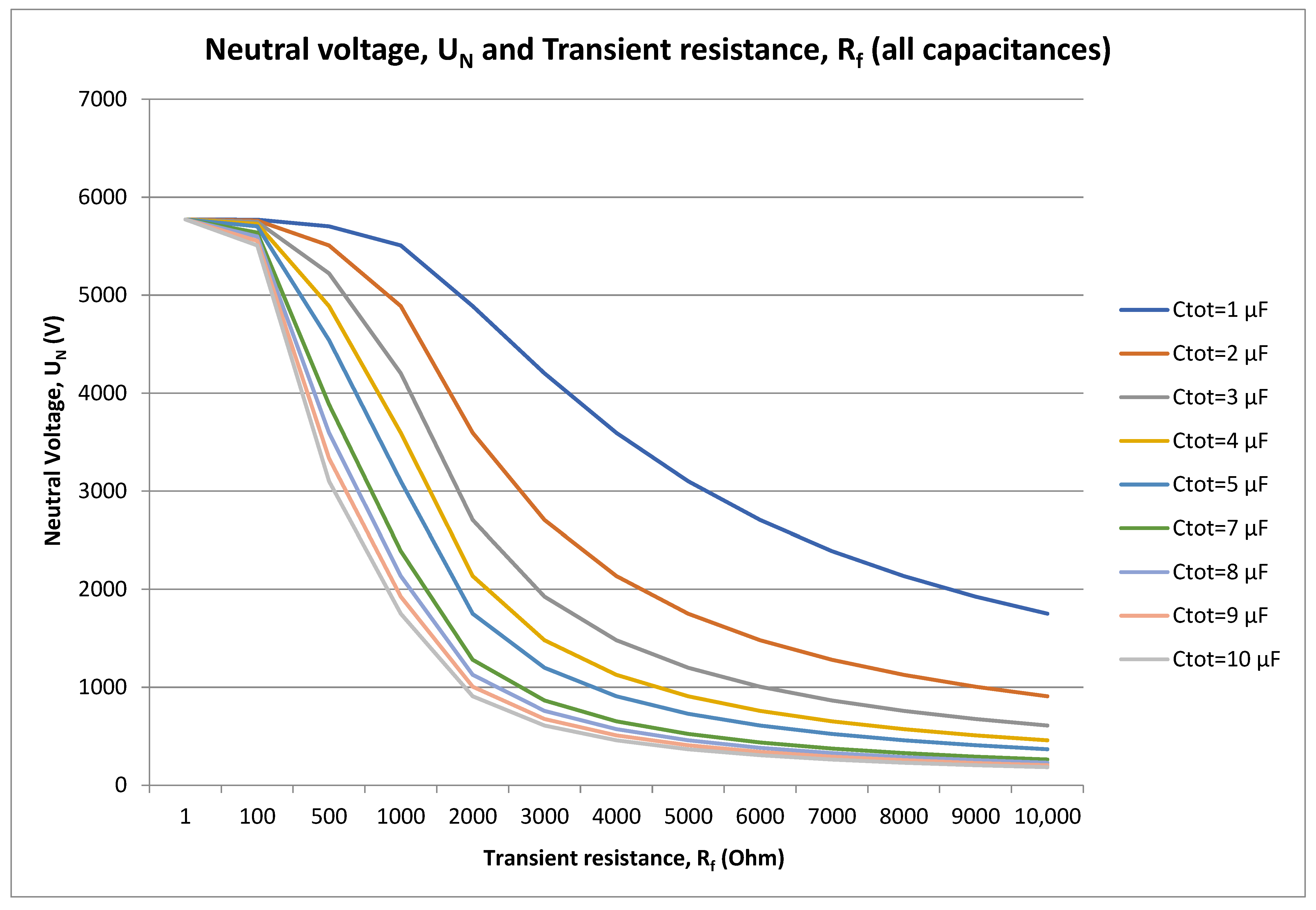We analyze a single-phase ground fault (SPGF) occurring on phase A through a transient resistance R. The effect of this resistance is introduced via its conductivity in the following: