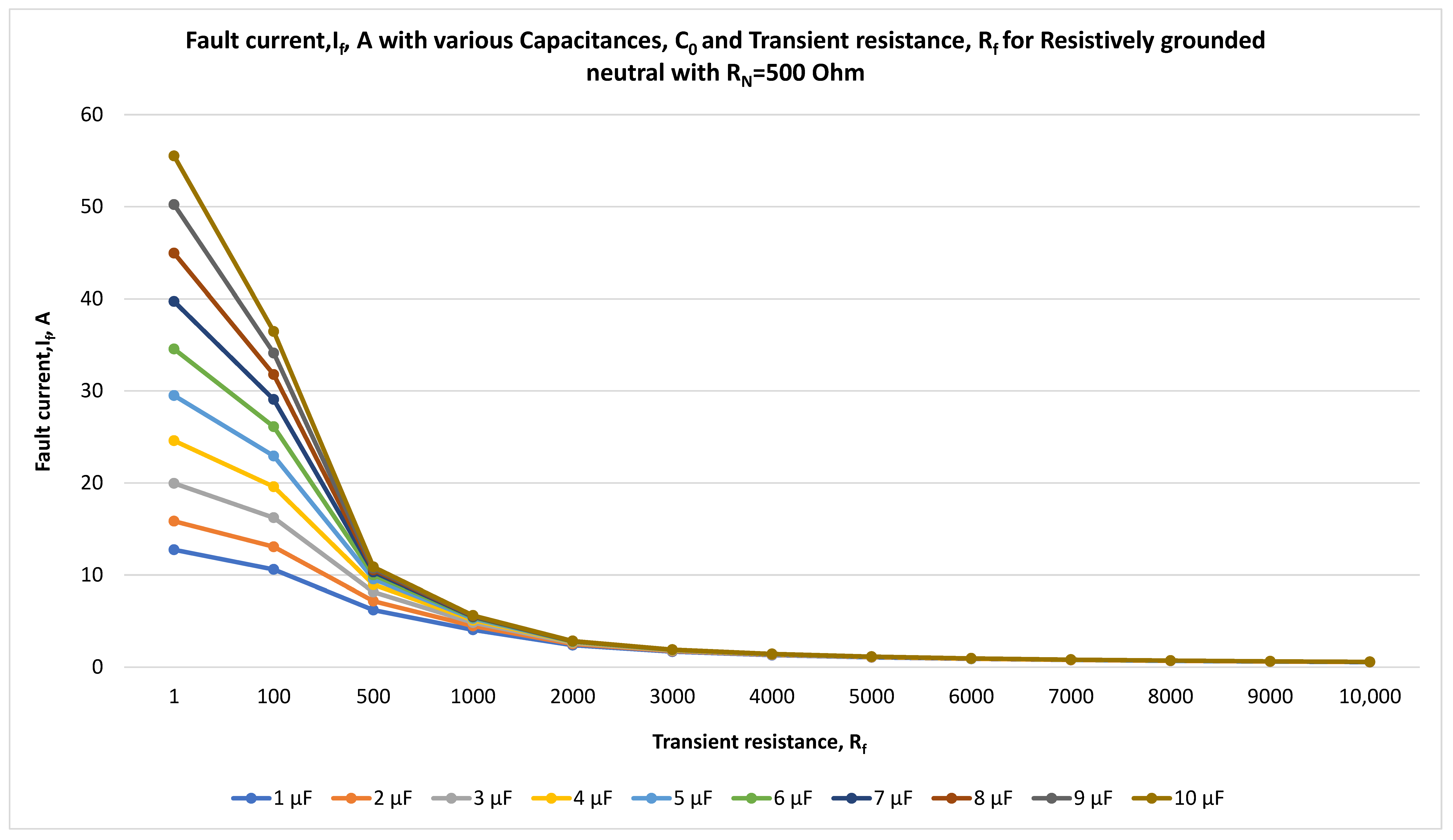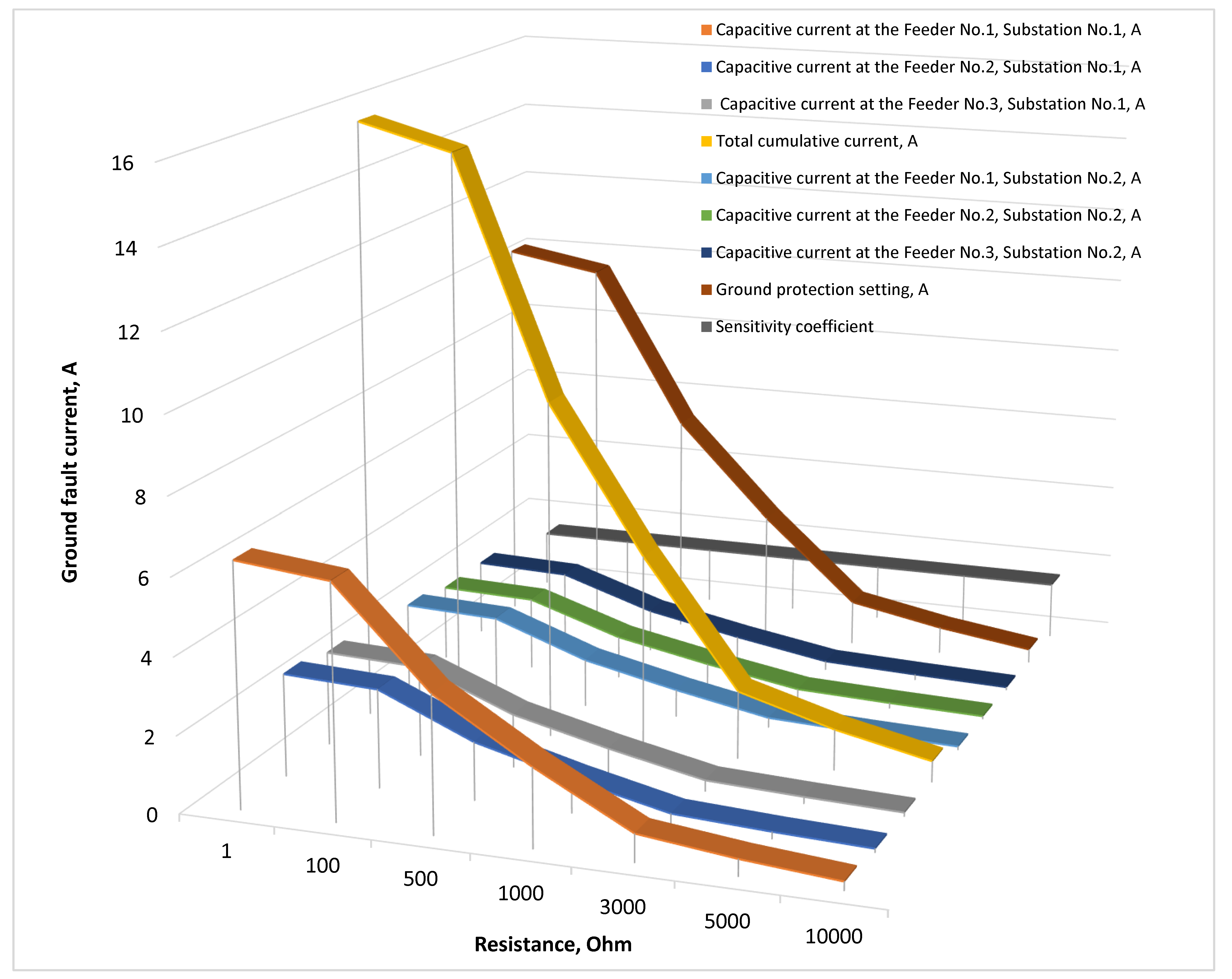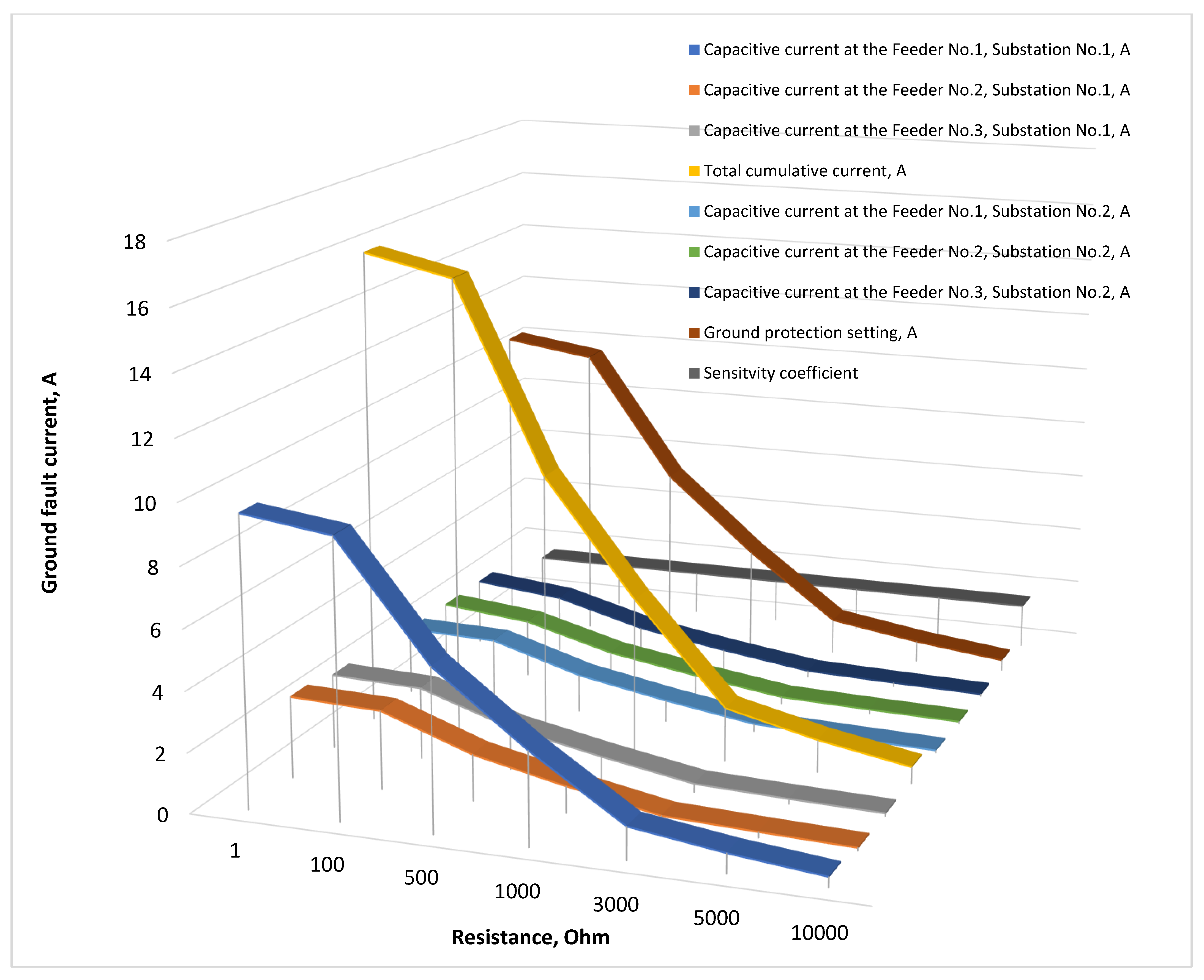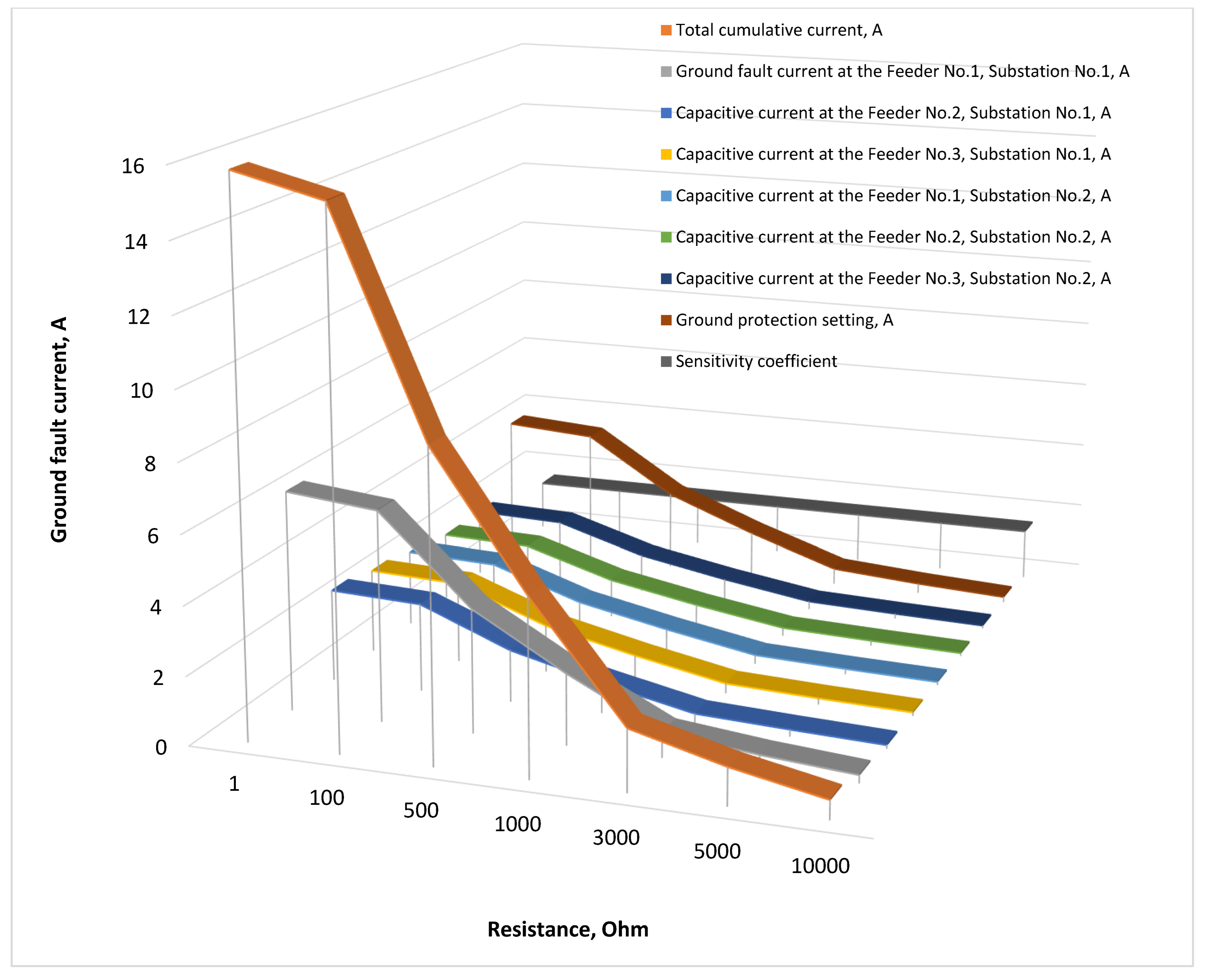 No.Resistance Rf, OhmCumulative Current, ACapacitive Current at the Feeder No.1, Substation