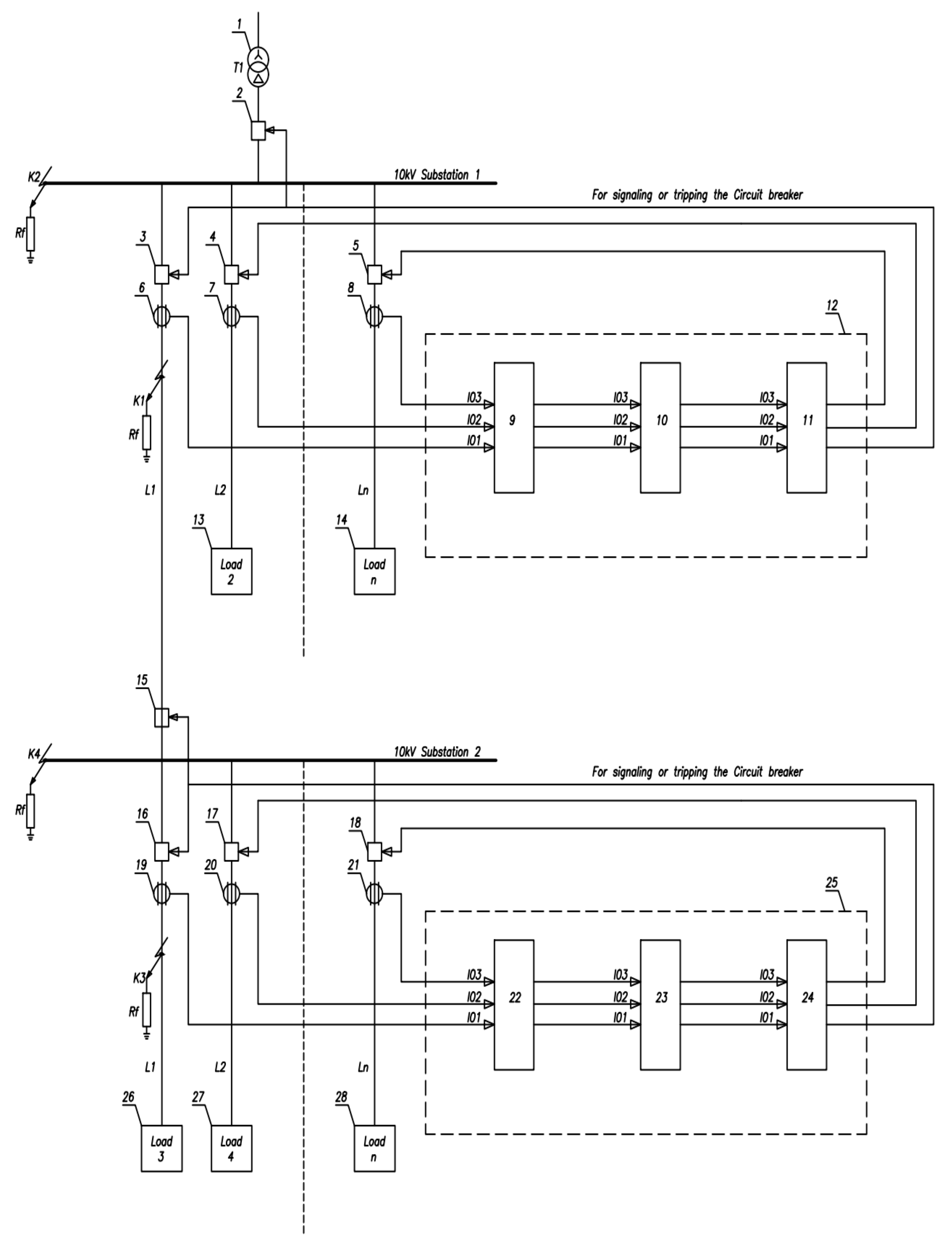 No.Resistance Rf, OhmCumulative Current, AGround Fault Current at Feeder No.1, Substation No.1, ACapacitive Current at Feeder No.2,