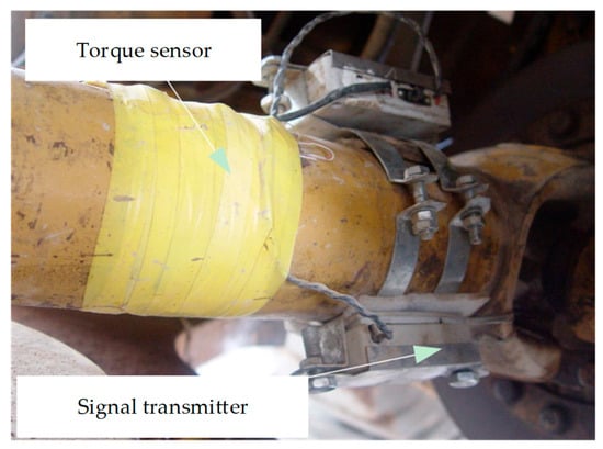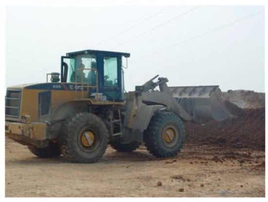 During operation, part of the engine power is transmitted to the driveline to propel the vehicle, while the remainder is supplied to the working implements, steering system, and braking system. The physical quantities that characterize vehicle energy consumption behavior include vehicle speed, travel resistance, and hydraulic resistance torque. For this study, a 5-ton loader equipped with sensors on both the powertrain and hydraulic systems was used as the test vehicle (Figure 3). Tests were carried out in a flat, open suburban area (Figure 4).