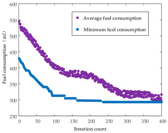 As outlined in Section 1, the efficiency of a hydromechanical transmission depends not only on its structural parameters but also on the external load. For a PCHMT, efficiency is strongly influenced by the loader’s operating load, resulting in substantial variation. Traditional design methods that optimize transmission efficiency over a specific speed ratio range are therefore unable to consistently minimize loader fuel consumption. To address this limitation, this study performs parameter optimization design for a PCHMT based on the constructed typical loading–hauling cycle of the loader, with the objective of minimizing vehicle fuel consumption. The optimization objective function is defined as