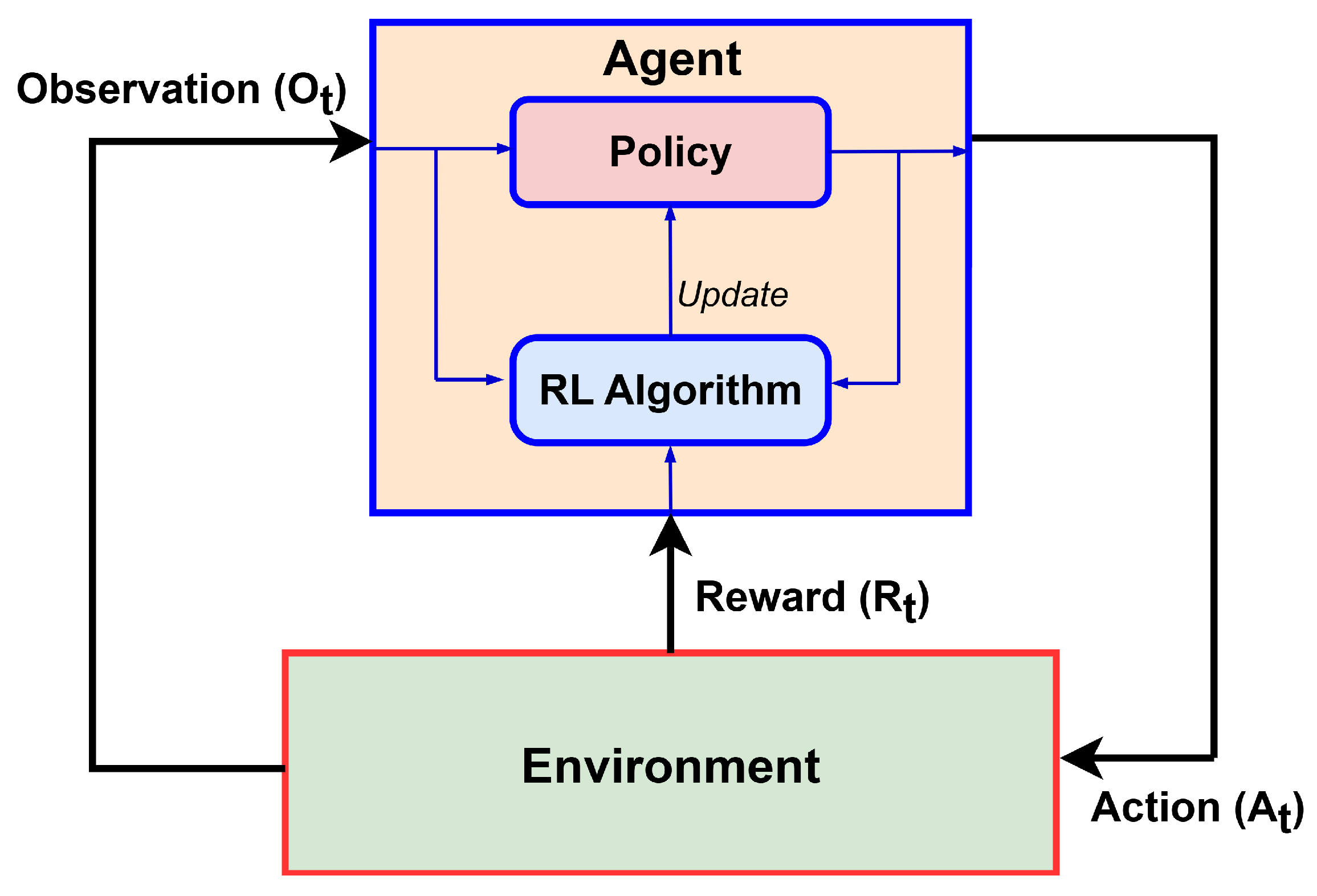 | On-policy | Learning is based on the current policy. Exploration is limited to the current policy. Suitable when the environment is relatively stable and the agent can explore safely. | State-action-reward-state-action (SARSA) | value-based | discrete |