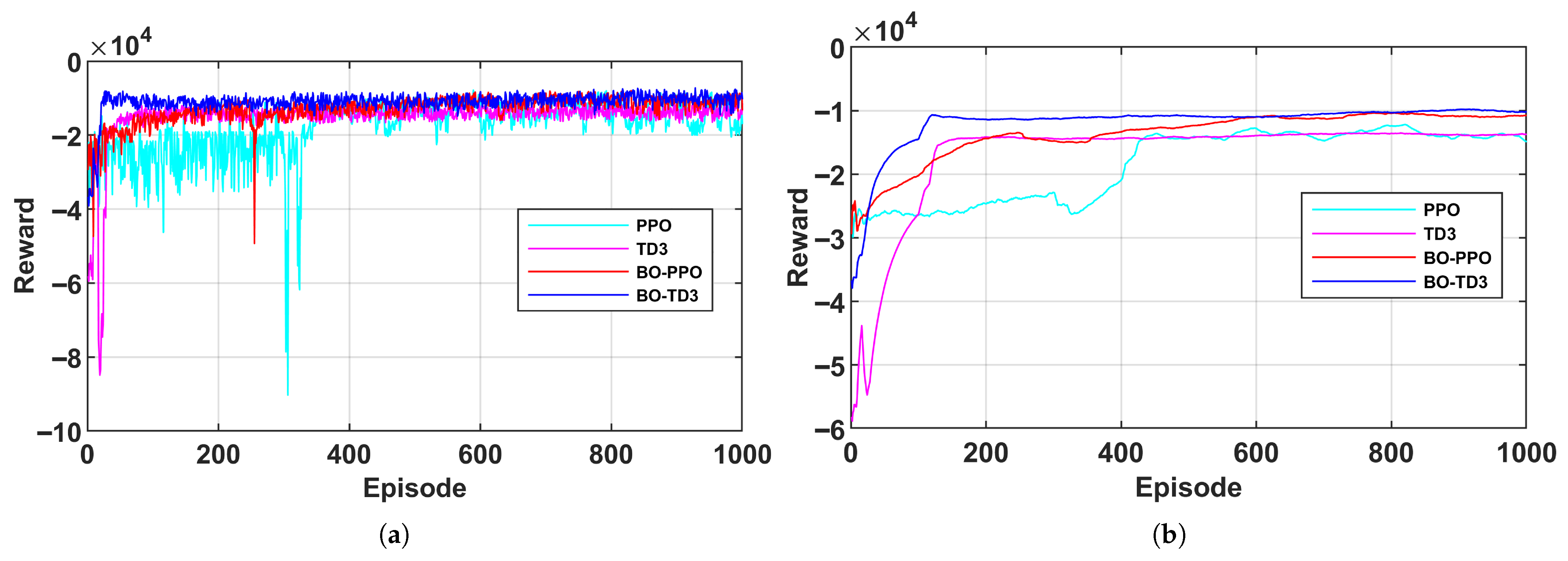 - Del Rio, A.; Jimenez, D.; Serrano, J. Comparative analysis of A3C and PPO algorithms in reinforcement learning: A survey on general environments. IEEE Access 2024, 12, 146795–146806. [Google Scholar] [CrossRef]