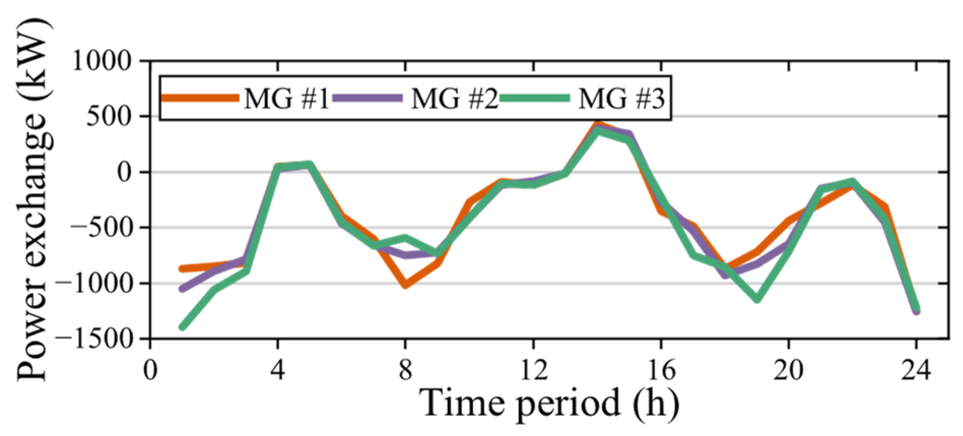- Frequency security constraints significantly affect power exchange and economic performance. Without frequency constraints, microgrids exhibit larger power exchanges with the distribution network and better economic outcomes, but at the cost of higher frequency risks. With the inclusion of frequency constraints, the exchange range is compressed, system flexibility decreases, and economic efficiency is partially sacrificed, but frequency stability during unintentional islanding is effectively guaranteed.