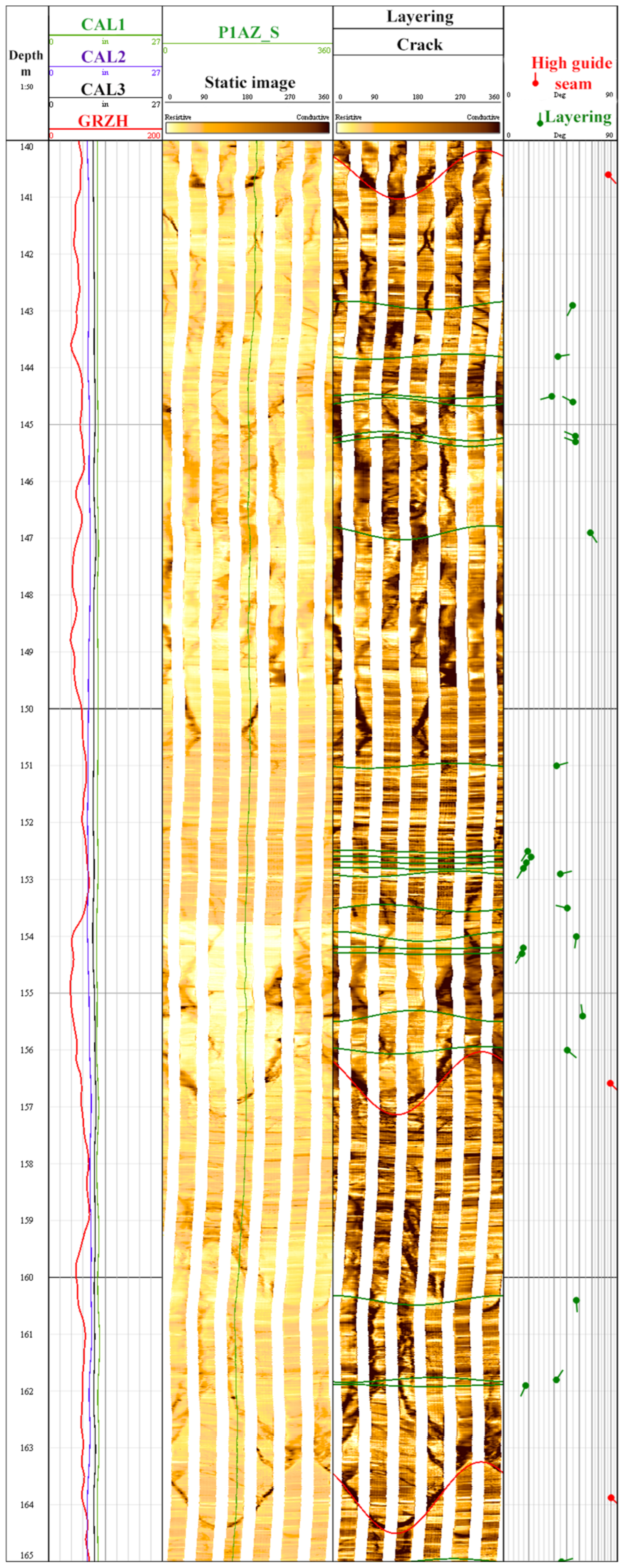 | 21 | Black | Stepped fracture | Semi-bright | Larger fractures with good connectivity, partially filled and blocked by debris | Blocky | ![]() |