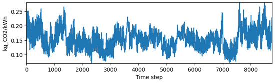 Carbon emissions are the second KPI, corresponding to the product of imported energy and hourly carbon intensity (, in kg CO2e per kWh):