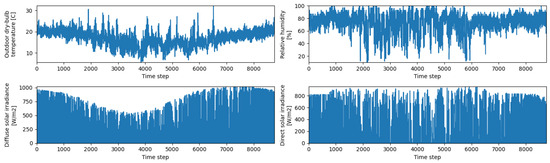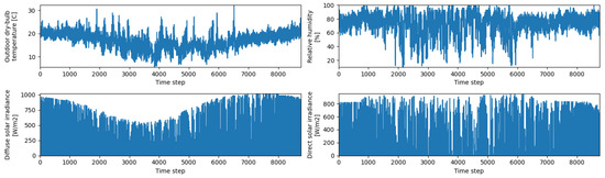 The simulation framework supplements the building data set with typical meteorological year (TMY3) weather observations recorded at Los Angeles International Airport, along with an hourly carbon-intensity profile (kilograms of equivalent per kilowatt-hour). Price signals reflect Southern California Edison’s TOU-D-PRIME schedule, an option geared toward households that operate behind-the-meter batteries, with the tariffs provided in Table 1. It can be seen in the table that unit prices fall to their lowest level in the short window before sunrise and again after midnight. They remain near their average value throughout the months of October through May, when regional demand is relatively less. On weekends, the utility further relaxes its pricing, so the usual 4 p.m. to 9 p.m. peak period becomes noticeably less expensive, a structure that implicitly rewards residents who can defer or store energy during weekday peaks yet still favor evening use on Saturdays and Sundays.