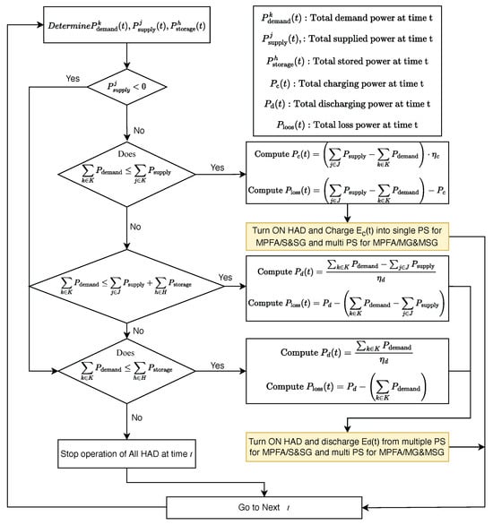 Conversely, if the supply is insufficient to meet the total demand, the algorithm suspends the operation of HADs, which may include flexible loads or critical appliances, to prevent over-discharge and ensure safe operation of the DPFS. Although this may lead to user discomfort due to interrupted appliance use, it preserves the integrity of storage systems and prevents excessive battery cycling or blackout conditions. This stepwise logic ensures that energy is allocated efficiently, losses are minimized, and system stability is maintained under varying operational and environmental conditions.