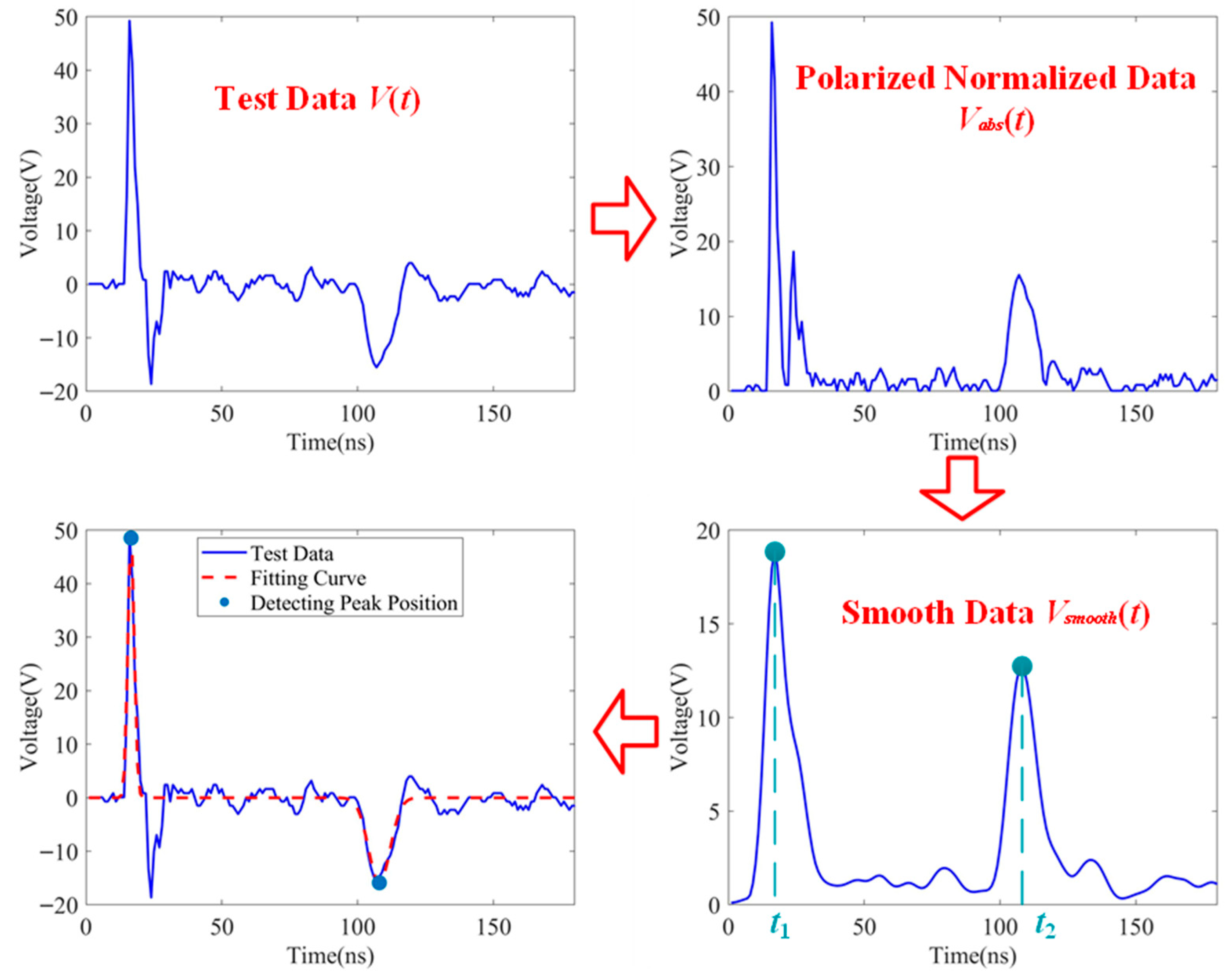 To accurately identify the peak locations of the incident and reflected waves and overcome the false triggering issue associated with traditional fixed-threshold methods in the presence of overshoot waveforms, this paper proposes a method based on screening local extreme for peak detection, using the following procedure: