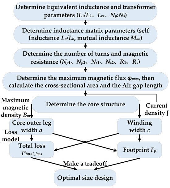 The individual magnetic components of traditional CF-DAB are shown in Figure 1 [23]. (a) Decoupled integration of two DC inductors. (b) High-frequency transformer. (c) External leakage inductor. (d) The magnetic components connection circuit.